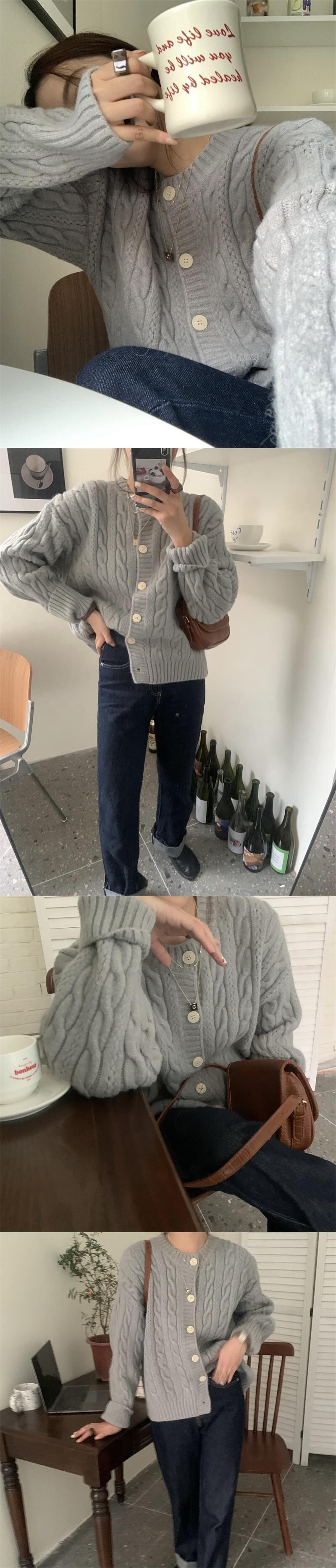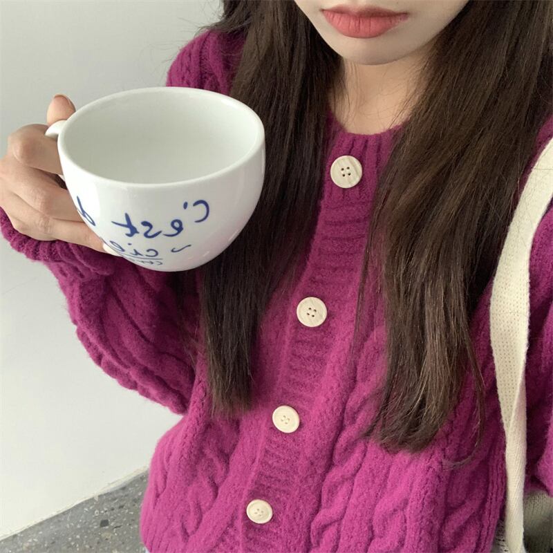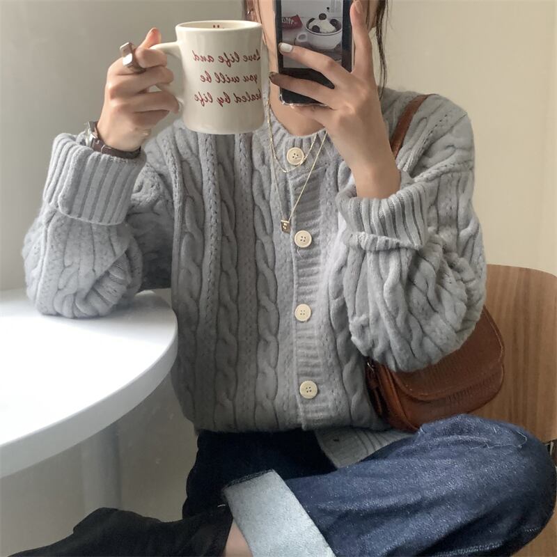 スタイルスタンダードニットカーディガンセーター コート 秋物カジュアルルーズトップス レトロ オータム パープル MONROE76370503442
