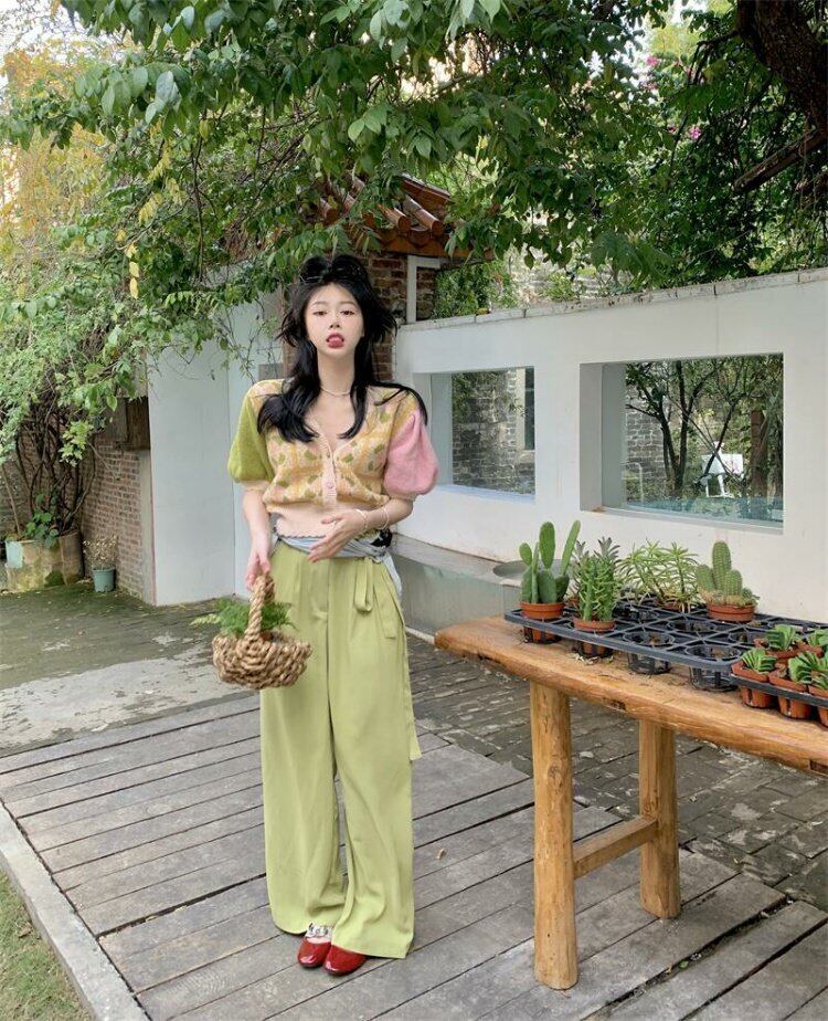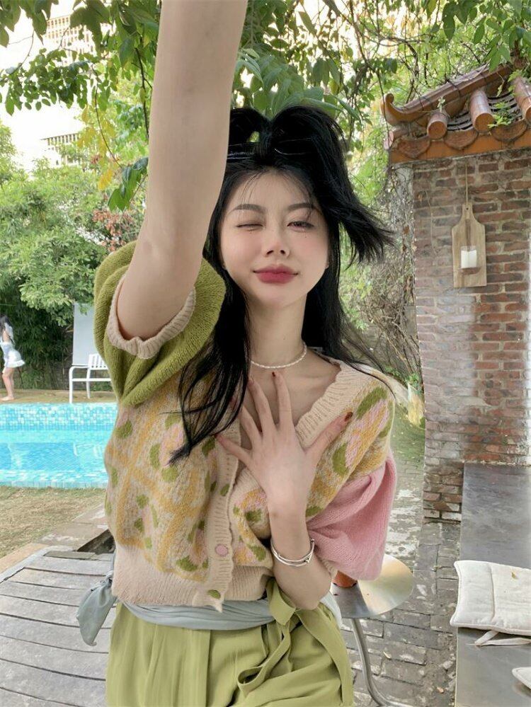 スリーブショートトップス スプリング韓国ファッションニット 半袖 ハーフスリーブ 大人ガーリー スウィート キュート カジュアル 春物 MONROE96550322890