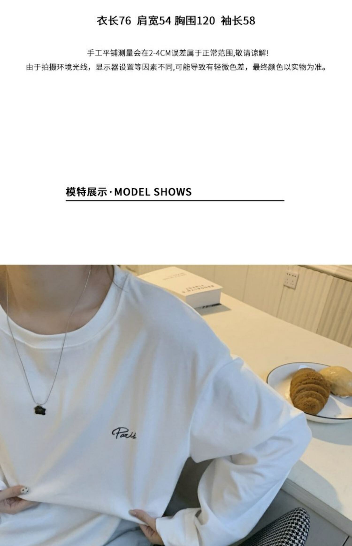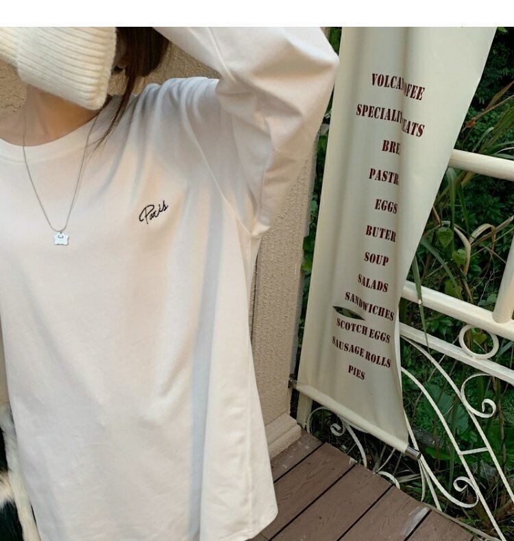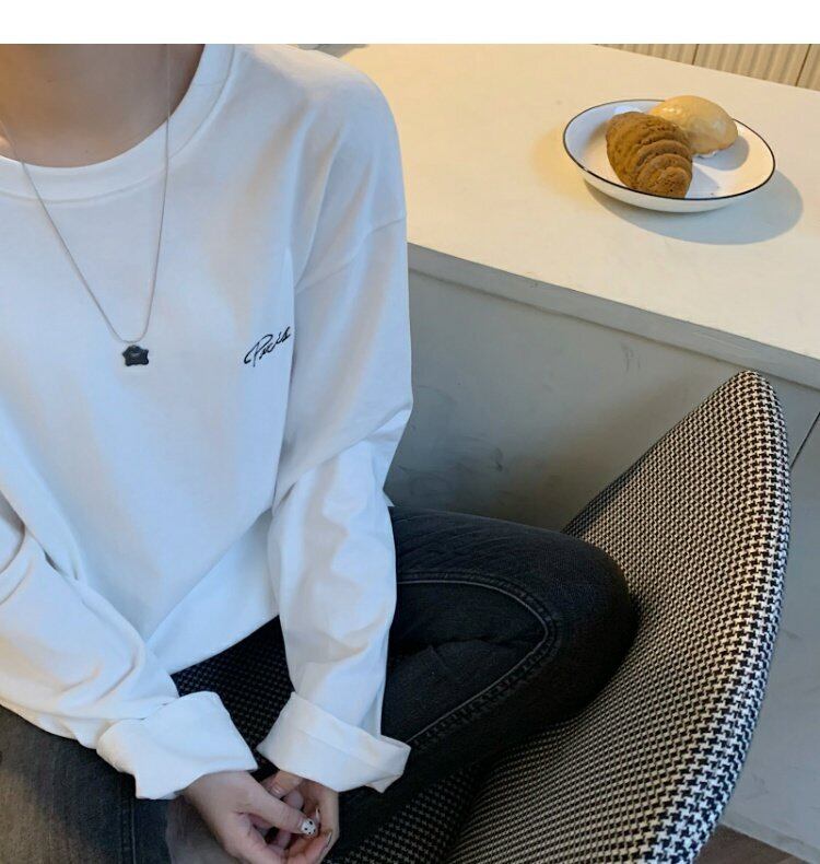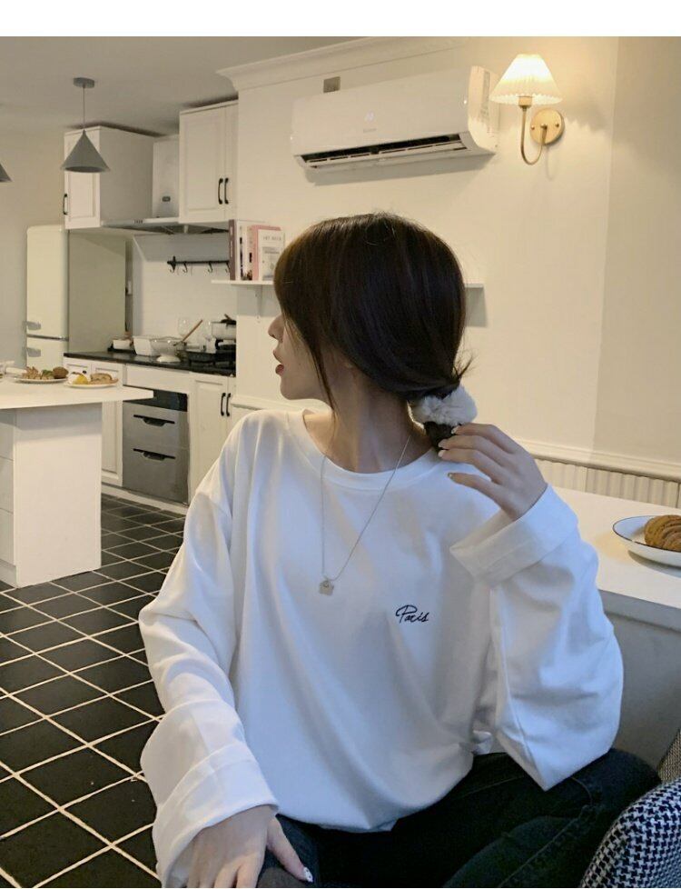 韓国ファッションルーズ薄手Tシャツシャツ ホワイトゆったりスプリング秋物プルオーバー トップス ロング 春物 オータム スタイル 長袖 MONROE91943129915