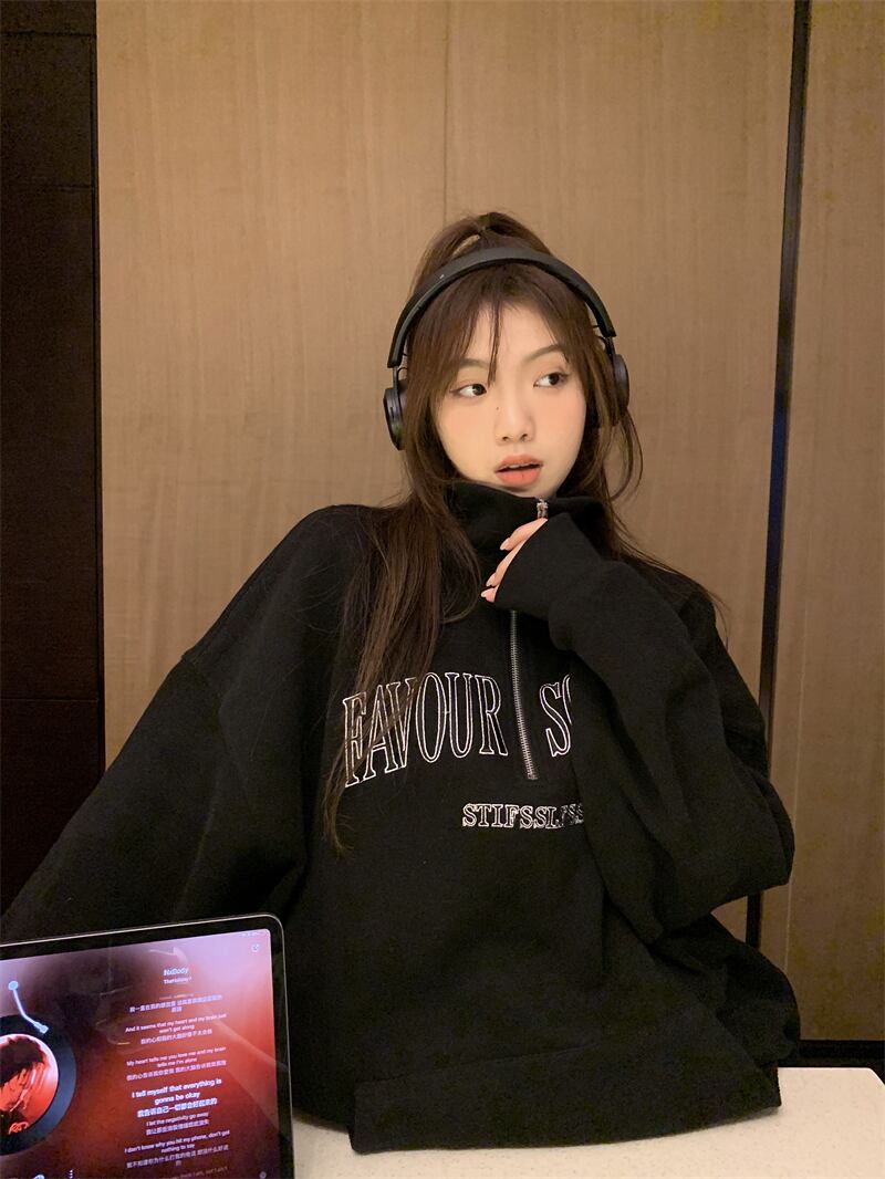 スタンダードブラックセーター コート スプリング薄手プルオーバー トップス ロング レトロ 春物 長袖 MONROE71439993388