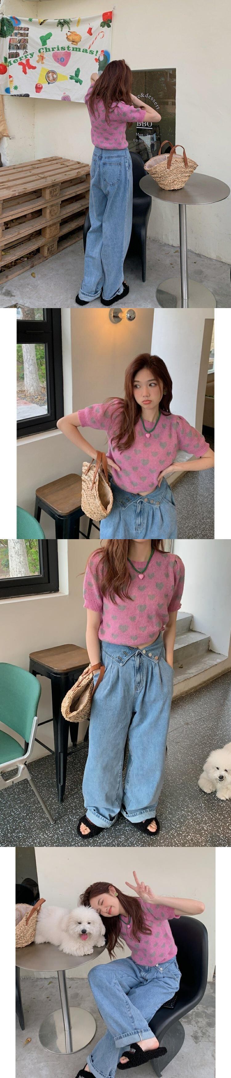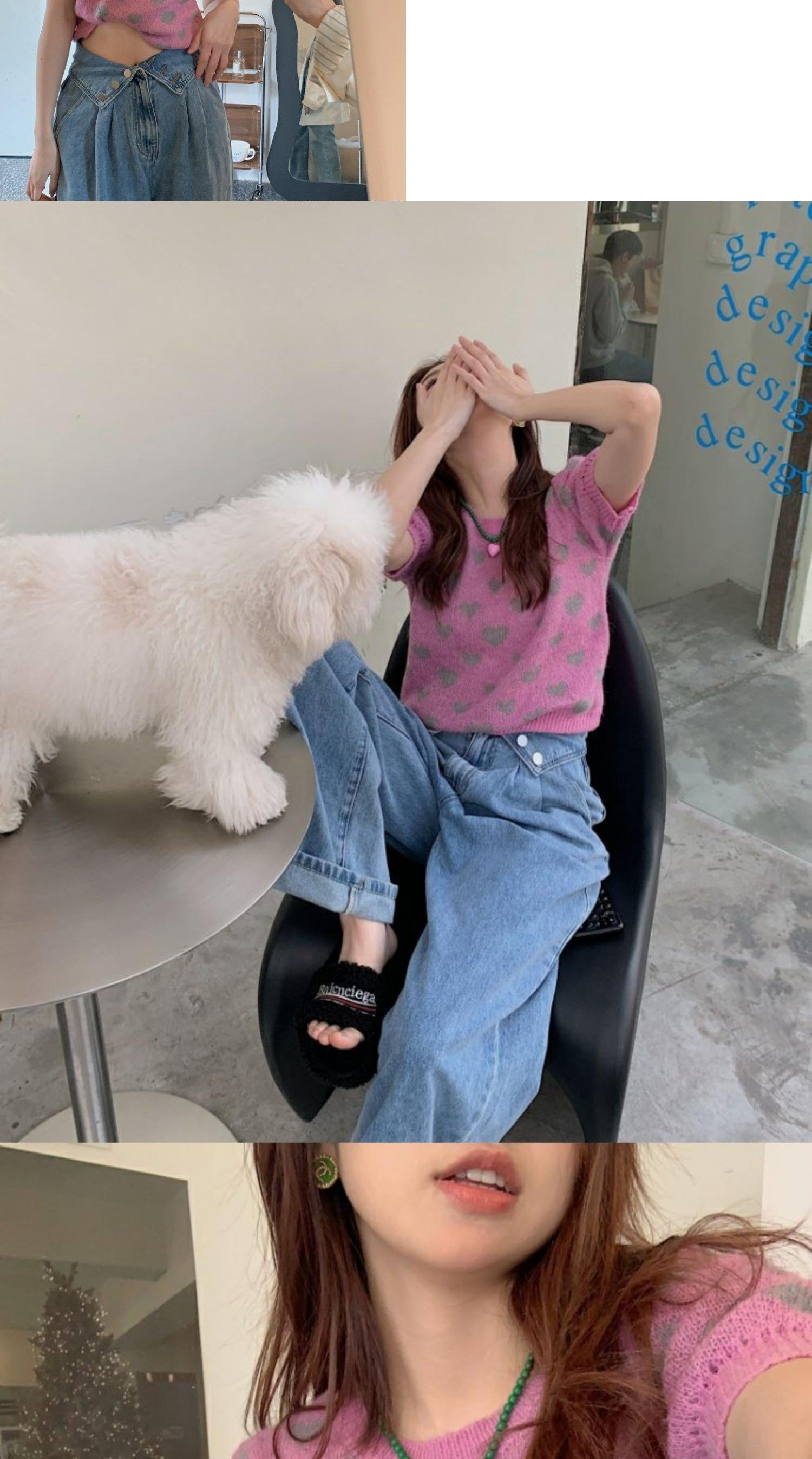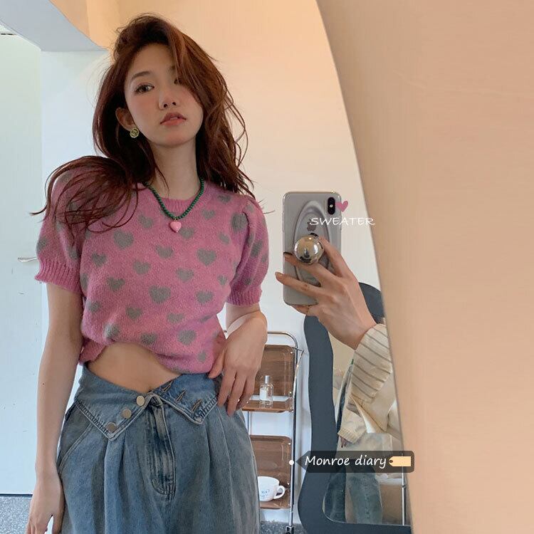 ショートトップス 夏服ニット半袖スリーブTシャツ ハーフスリーブ 大人ガーリー スウィート キュート カジュアル 夏物 パープル MONROE20989773309