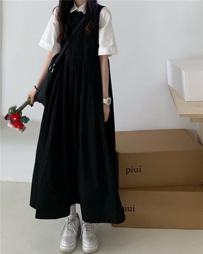 ブラックワンピースレディーススタンダードスカート スリム夏服Aラインロング レトロ 夏物 MONROE25323015407