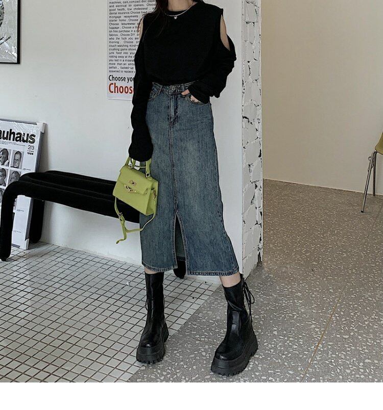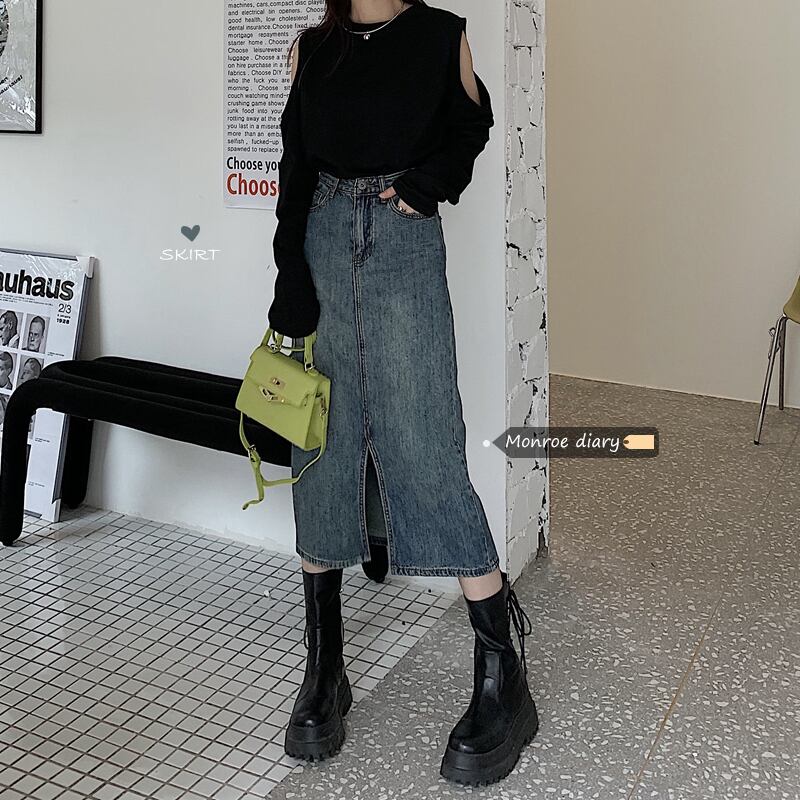 韓国ファッションスタンダードハイウェストウェストスカート スプリング秋物Aライン レトロ 春物 オータム スタイル ウエスト MONROE70240245669