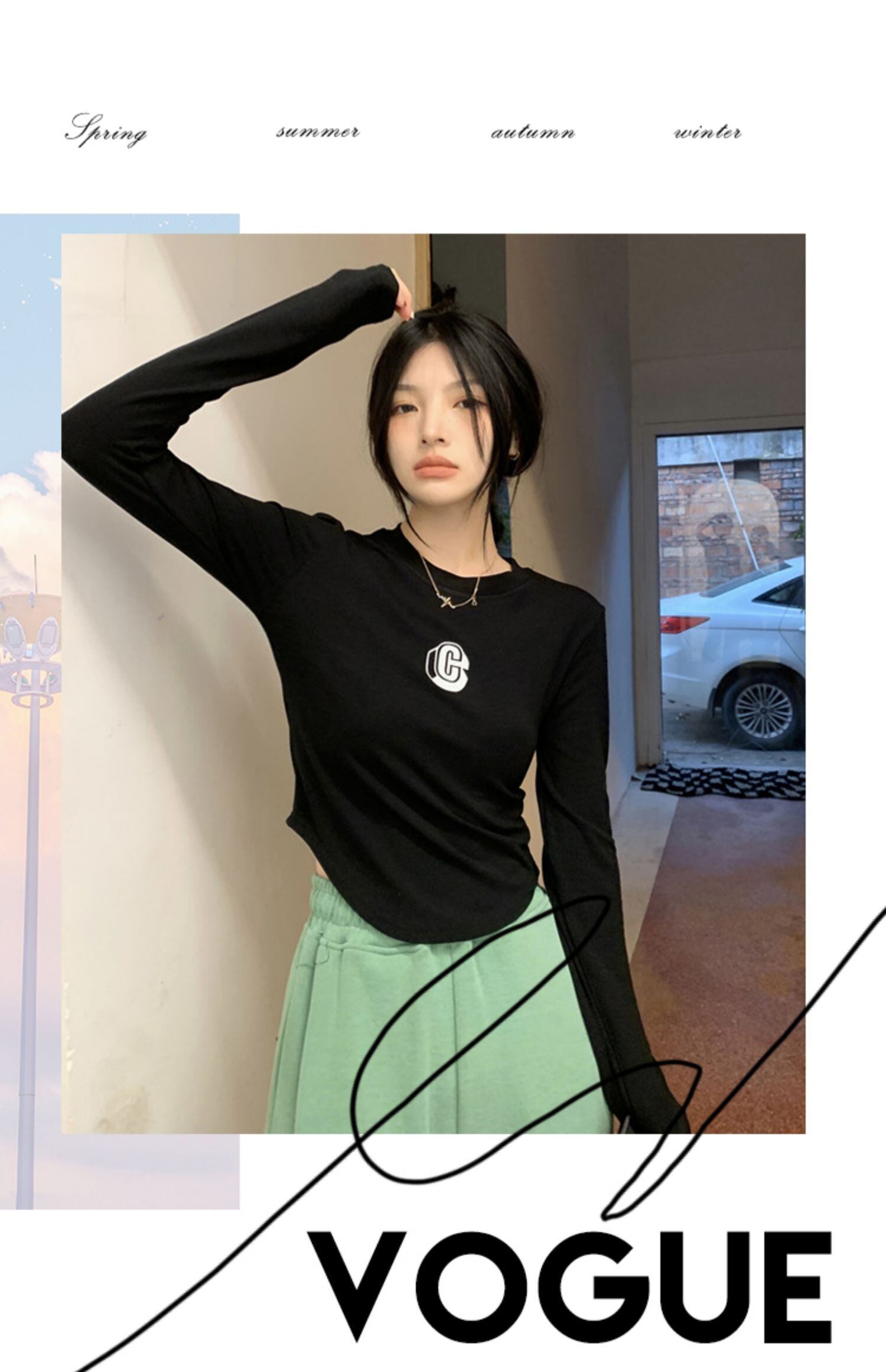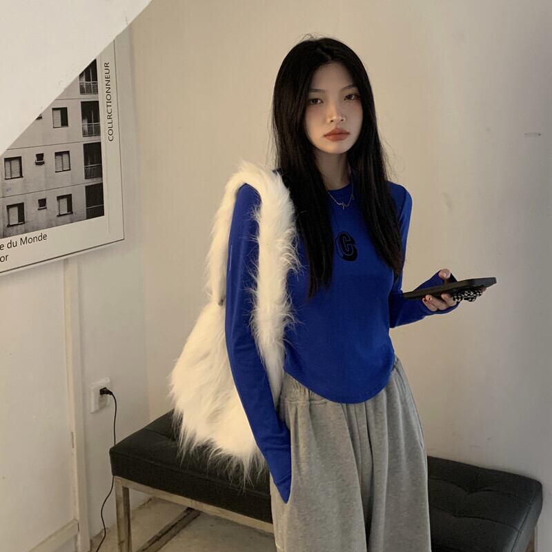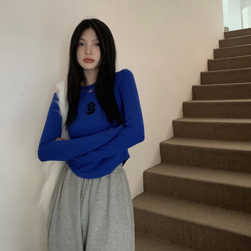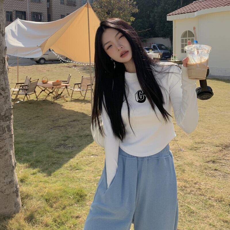 韓国ファッションスリムTシャツシャツ ゆったりスプリング秋物カジュアルトップス ロング 春物 オータム スタイル 長袖 MONROE40816634399