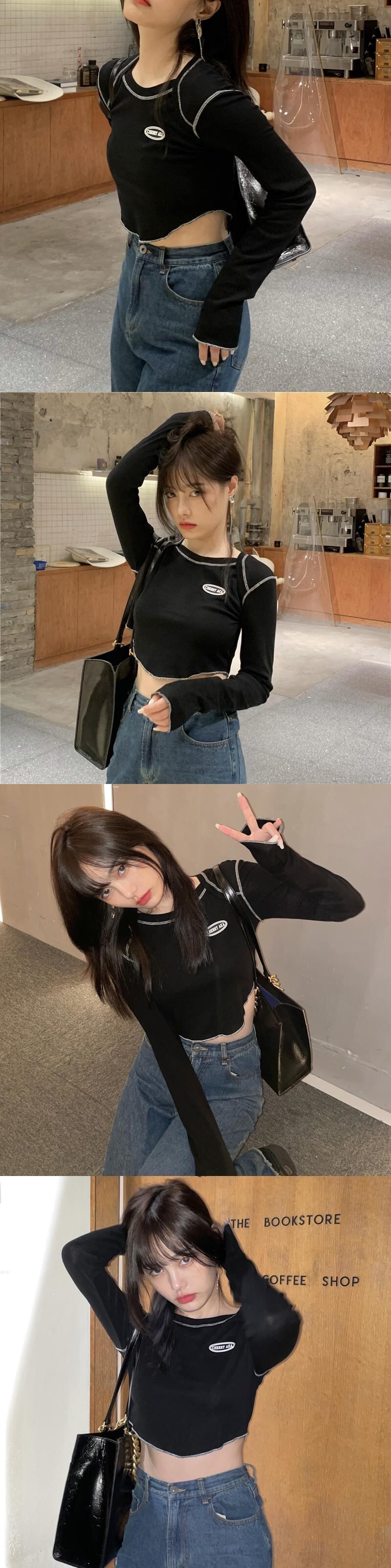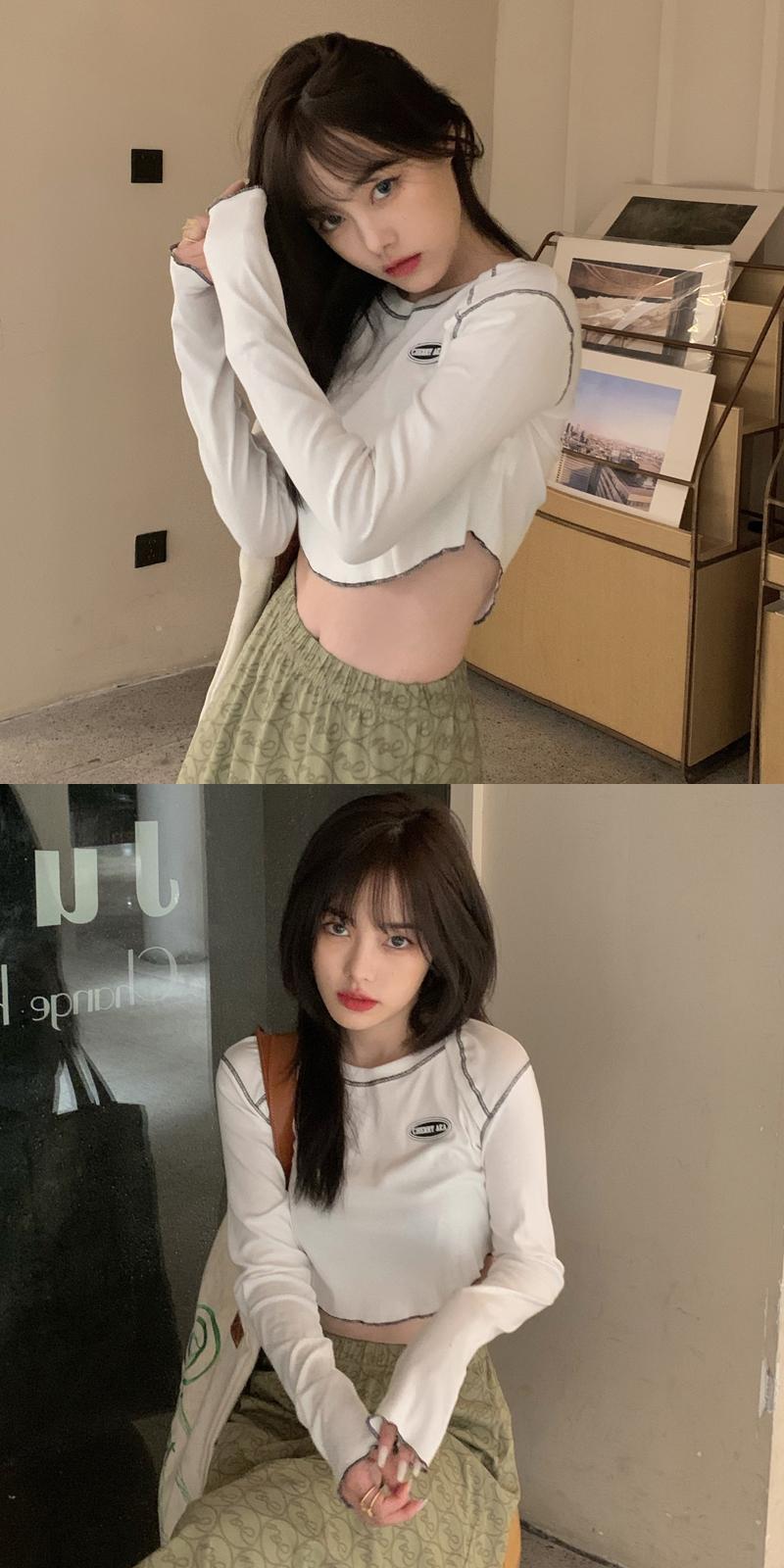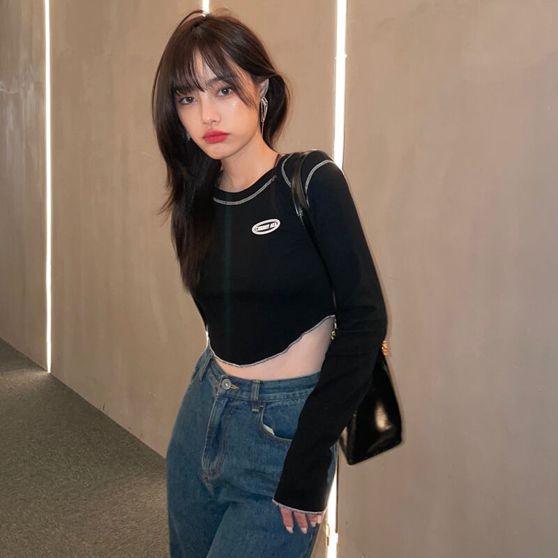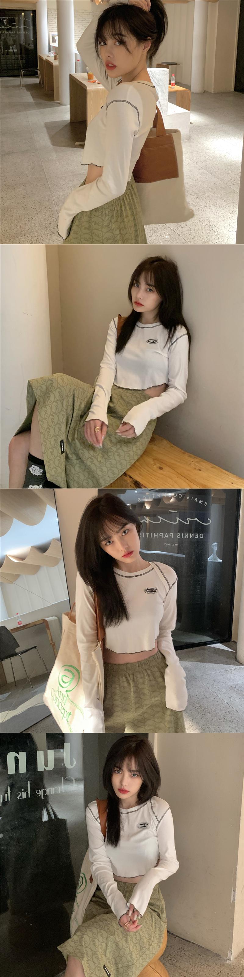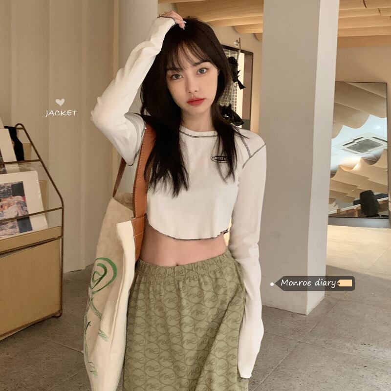 韓国ファッションNEWTシャツ秋物ショートスリムトップス ロング オータム スタイル 長袖 MONROE74194983712