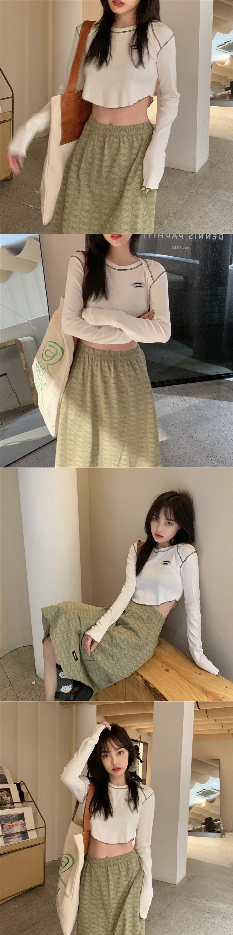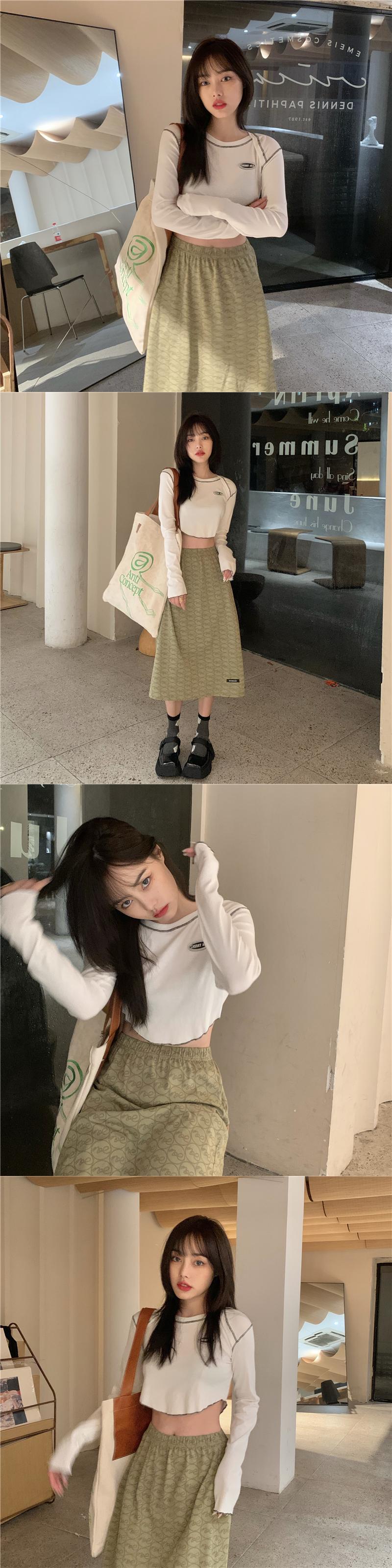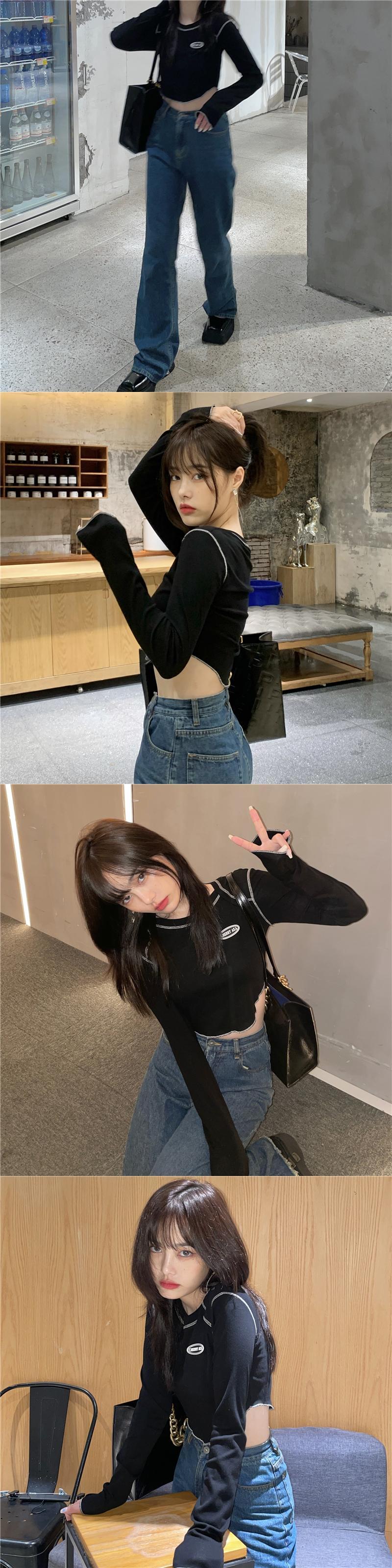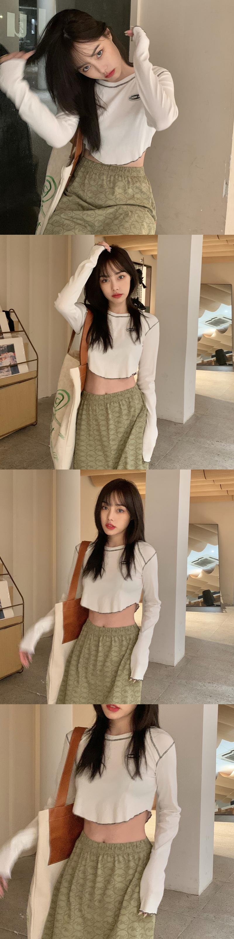 韓国ファッションNEWTシャツ秋物ショートスリムトップス ロング オータム スタイル 長袖 MONROE74194983712