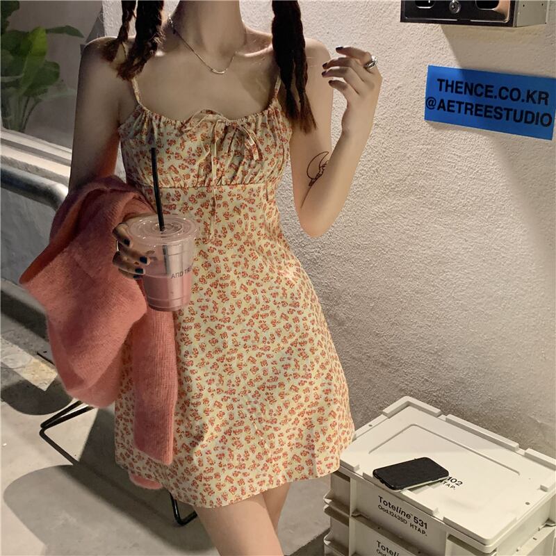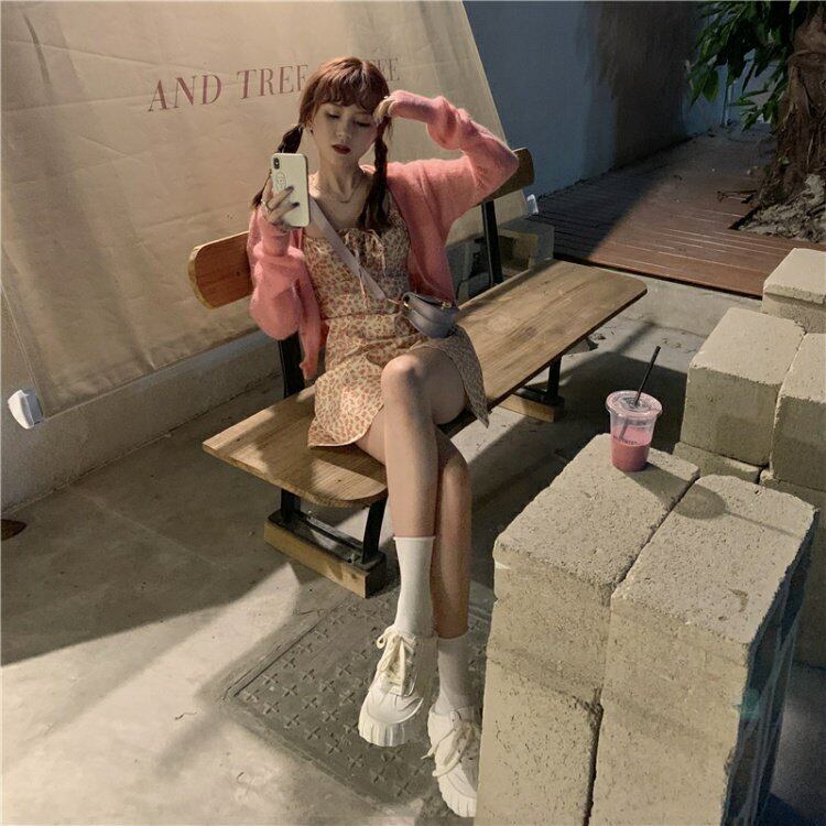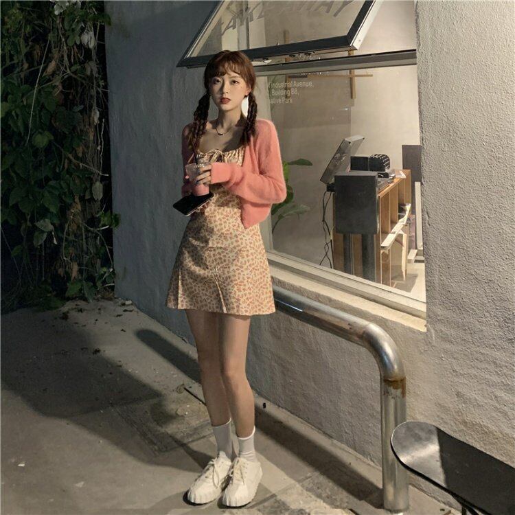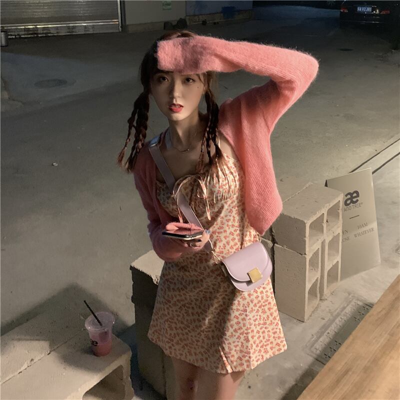 色:ピーチピンクカーディガン,フローラルキャミソール