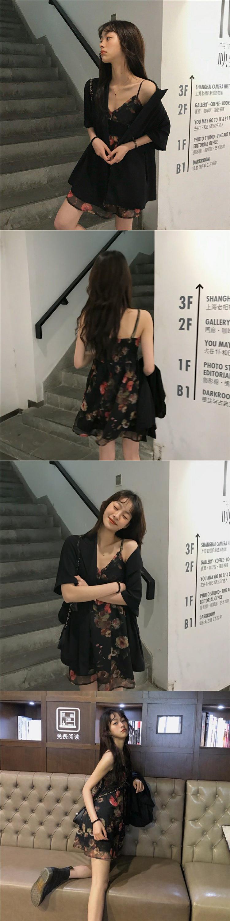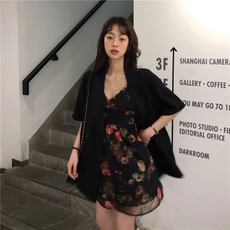 色:半袖黒スーツ,油絵ドレス
