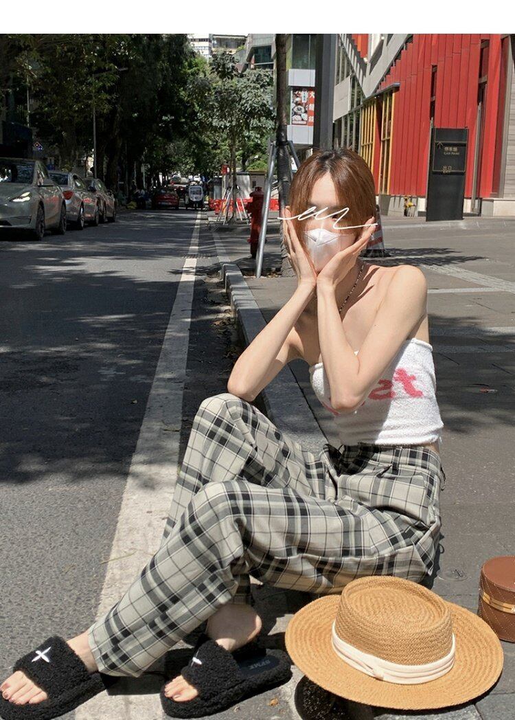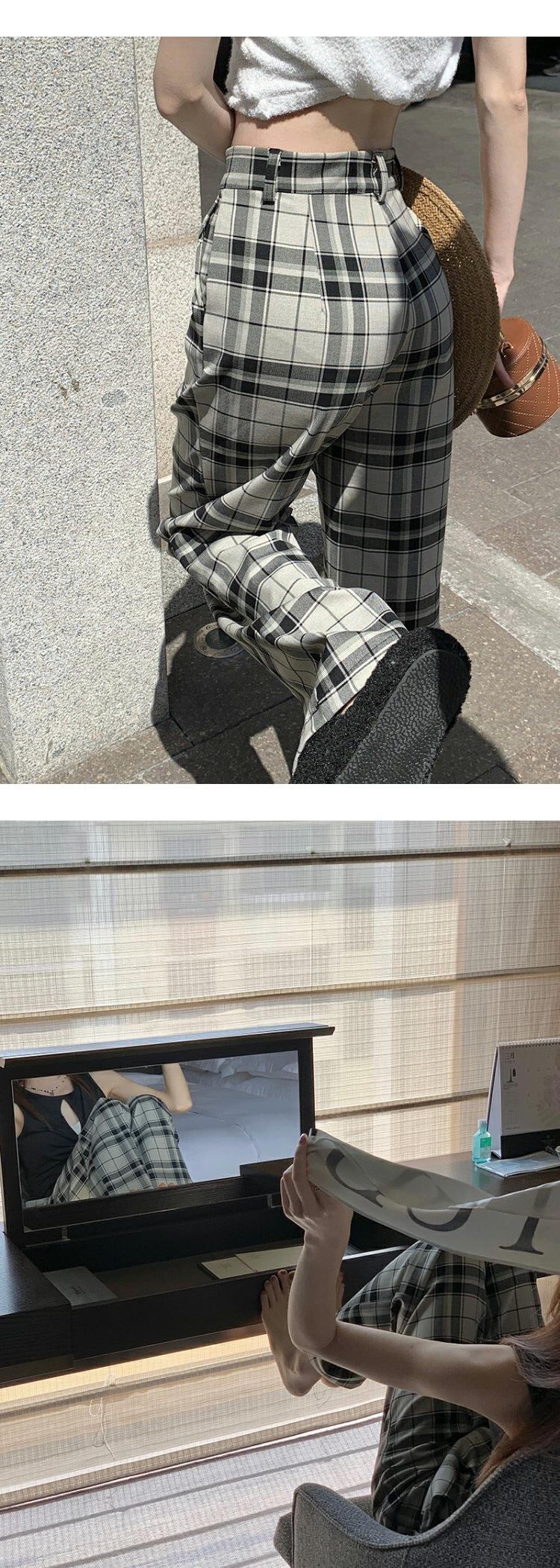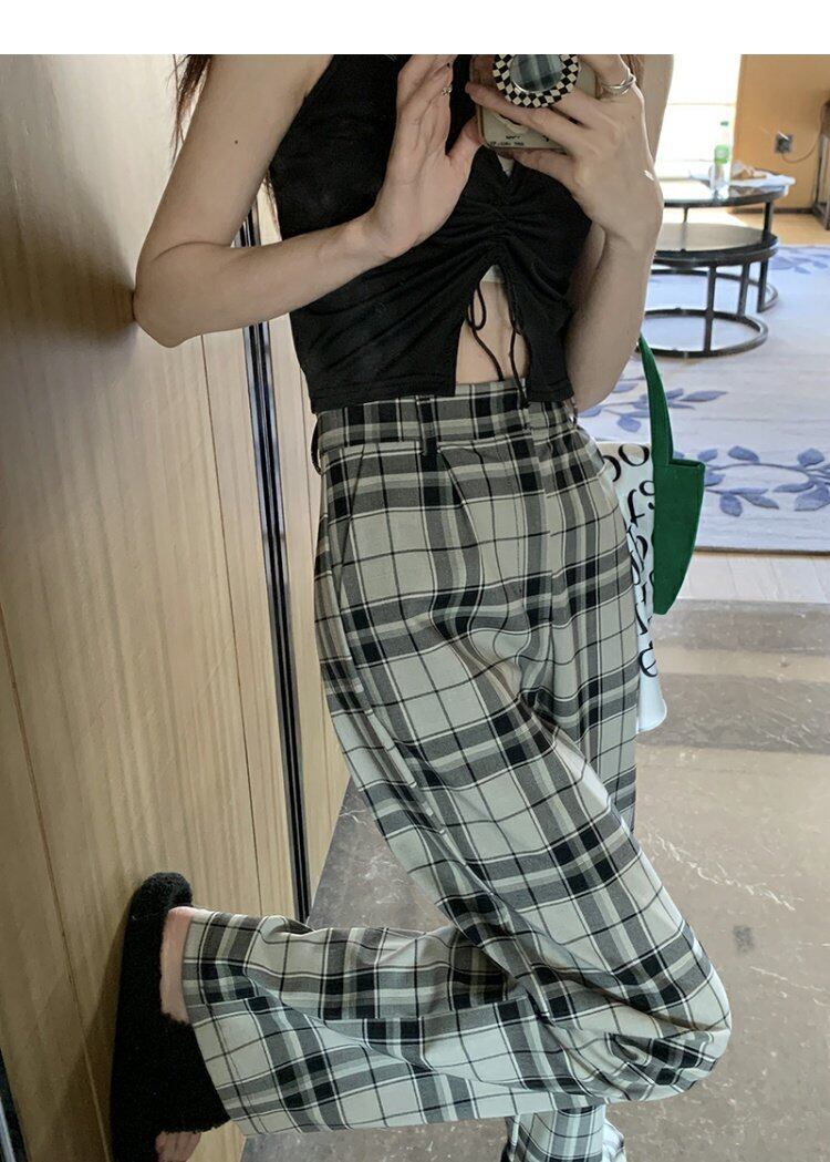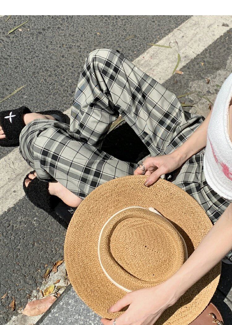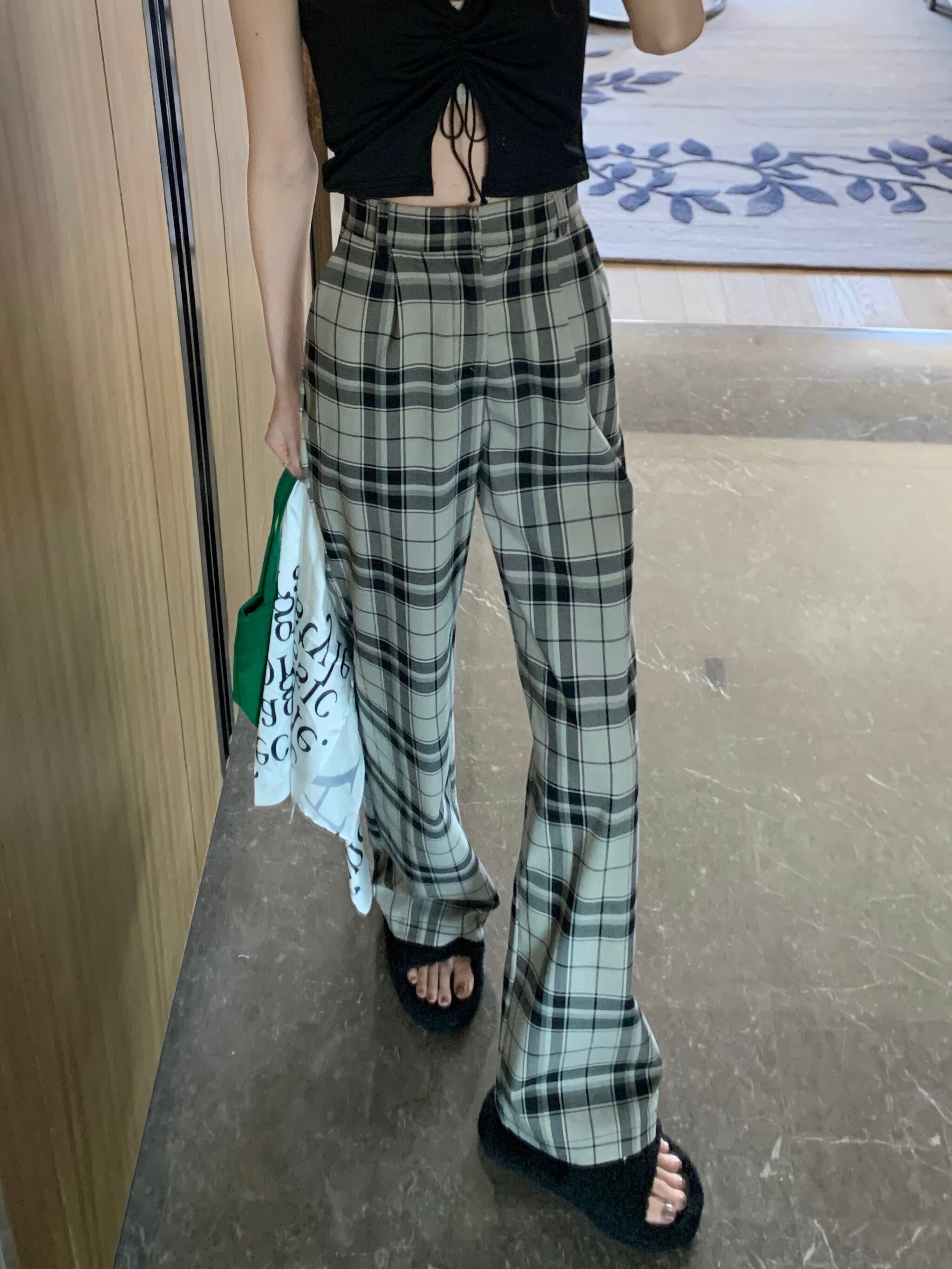 格子柄ルーズパンツ スプリングワイドレッグ 春物 ワイドパンツ MONROE9890890633