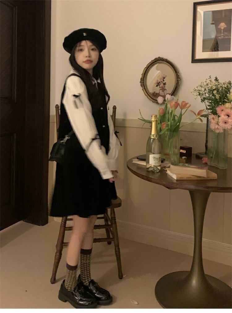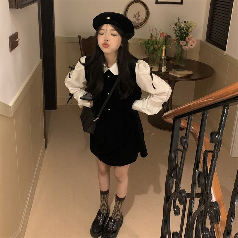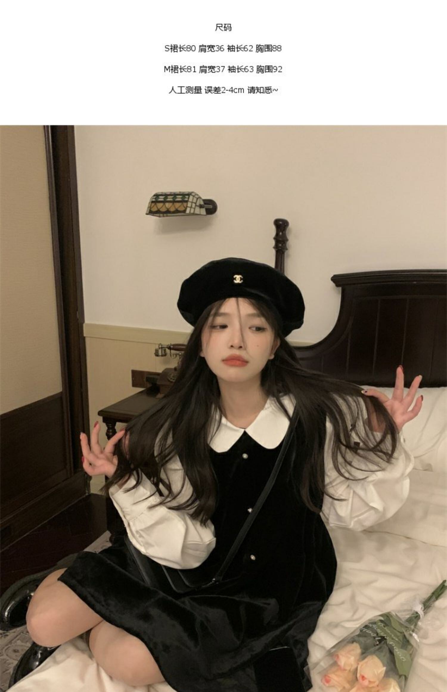 色:Sブラックフェイクツーピースドレス,Mブラックフェイクツーピースドレス