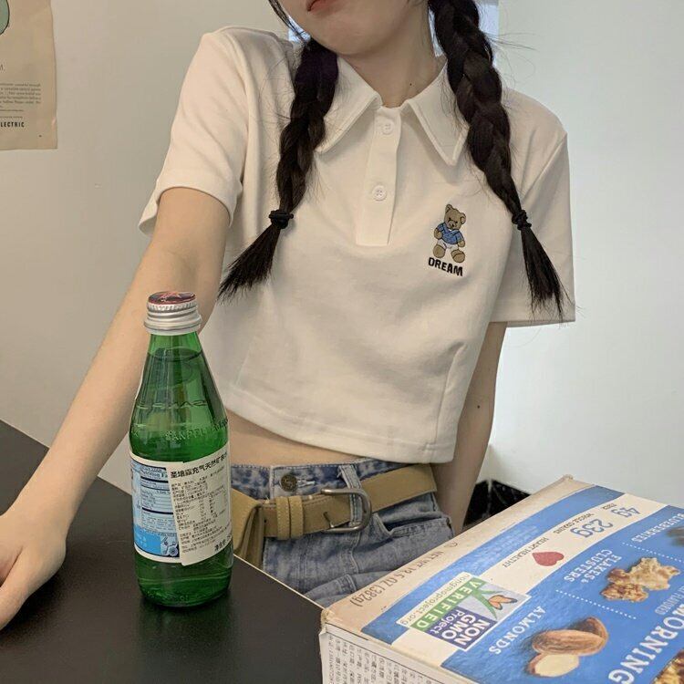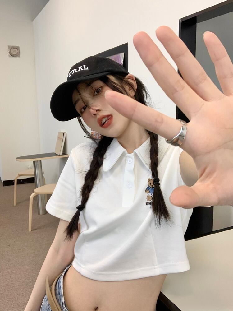 韓国ファッションカラーホワイト半袖スリーブTシャツシャツ ゆったりスプリングトップス ショート ハーフスリーブ 春物 MONROE89496790201