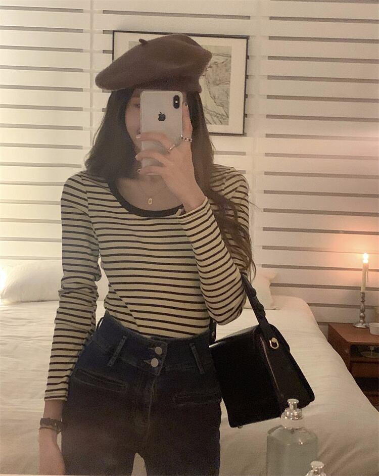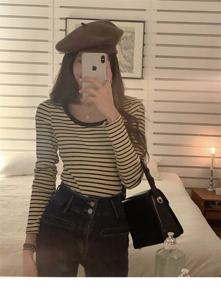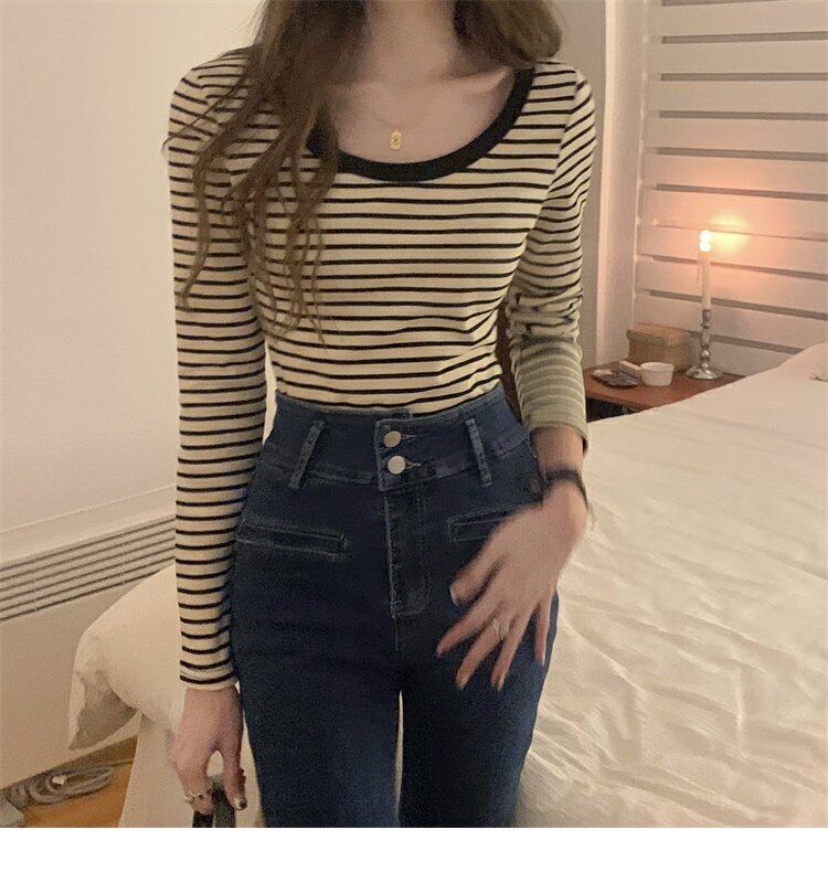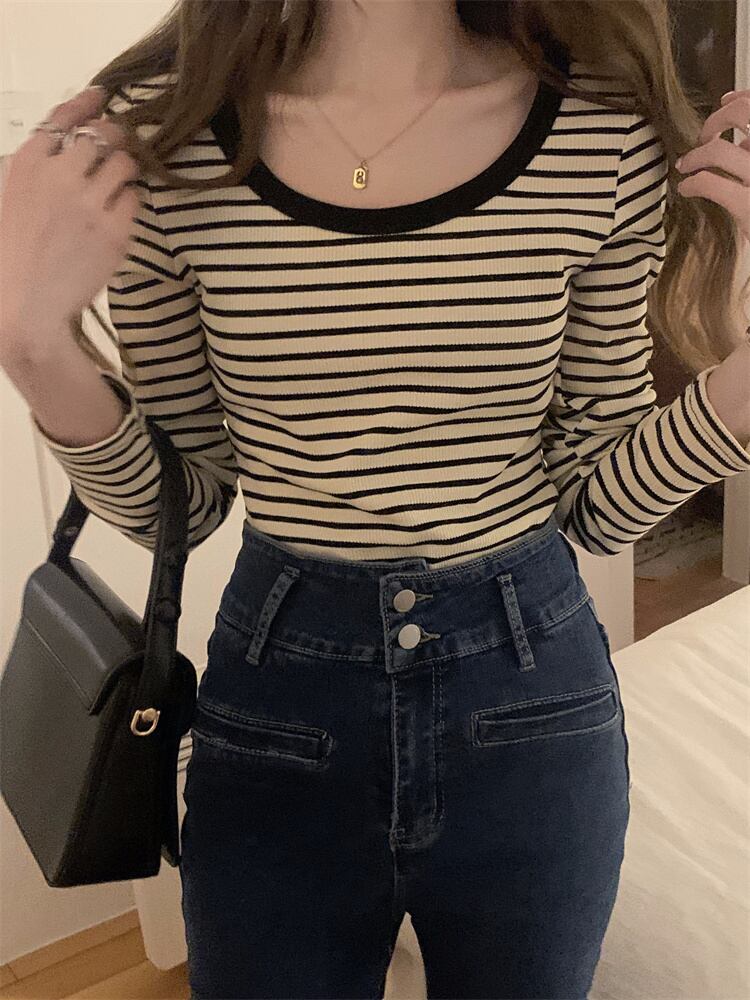 ストライプゆったりシャツ スプリング秋物スタイルスリムフィット薄手トップス ロング 春物 オータム ピュア 長袖 NEW MONROE55457430502