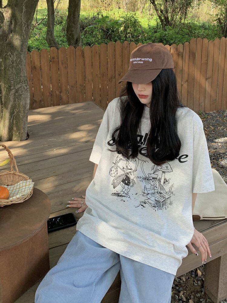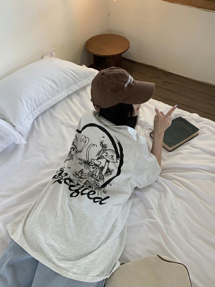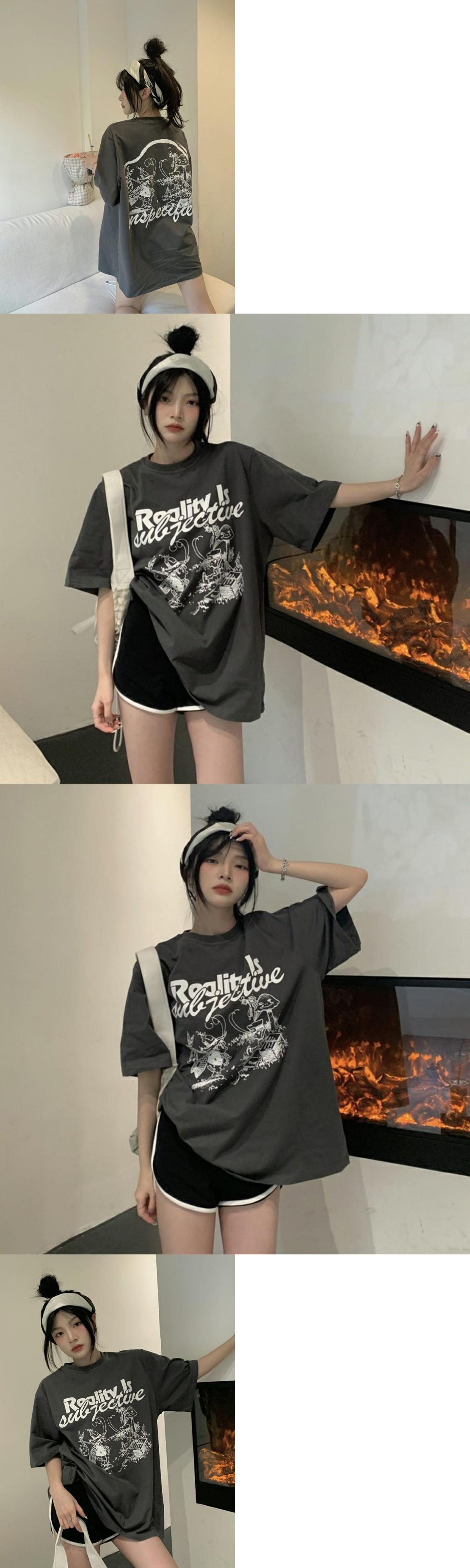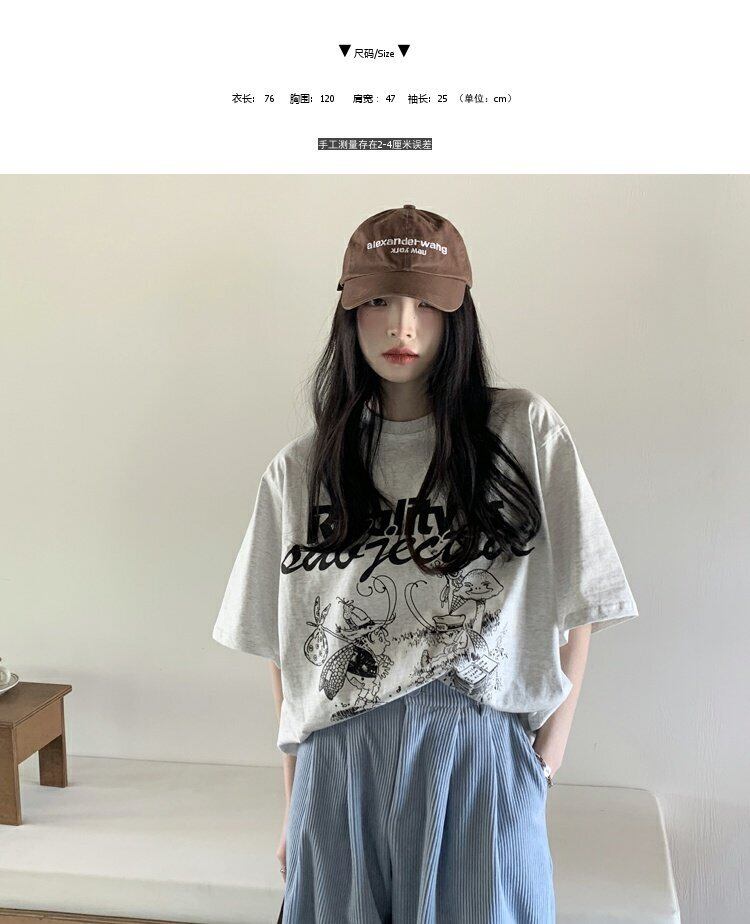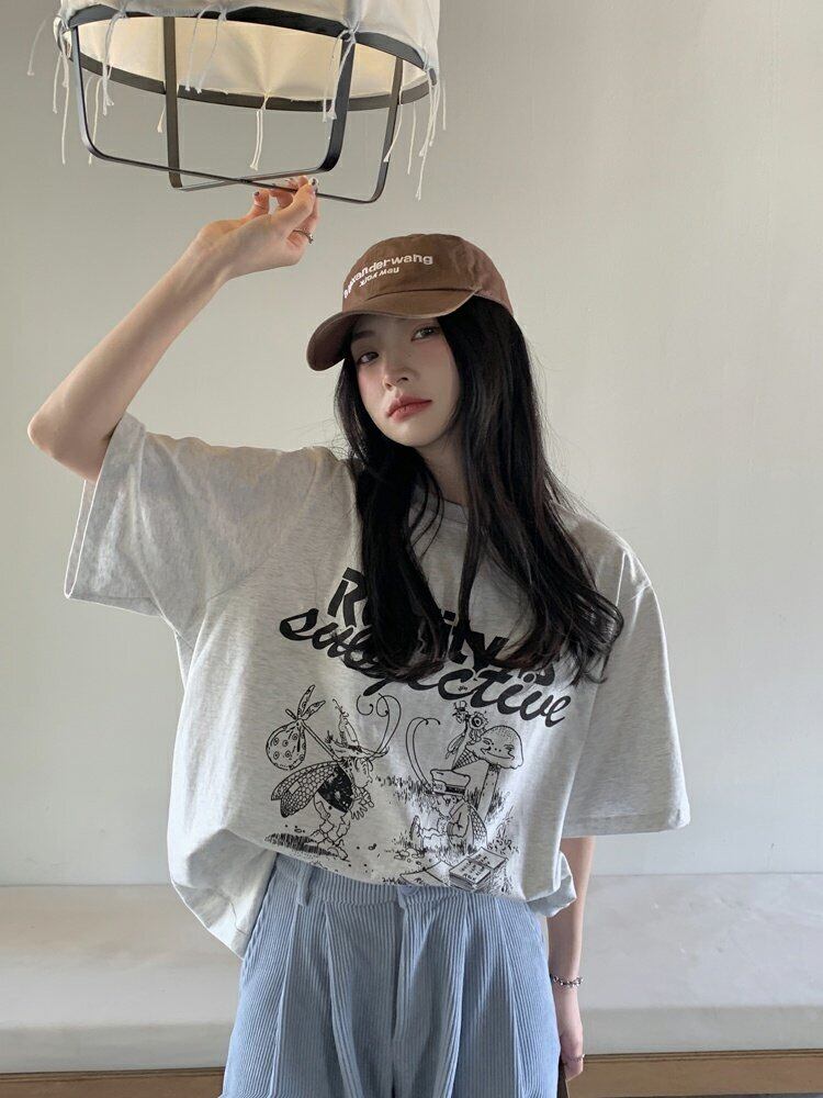 韓国ファッションTシャツシャツ スプリングルーズ薄手トップス プリントゆったり 春物 ミドル丈 MONROE90329791931