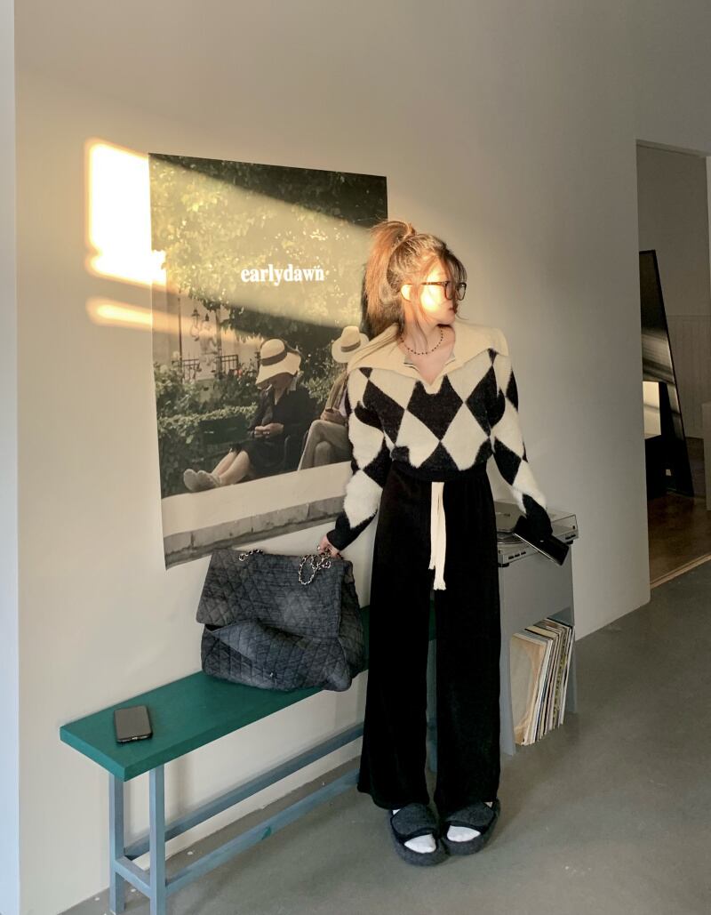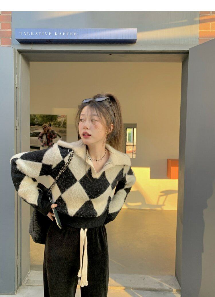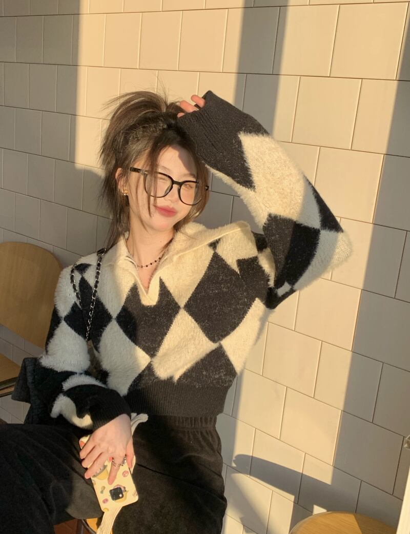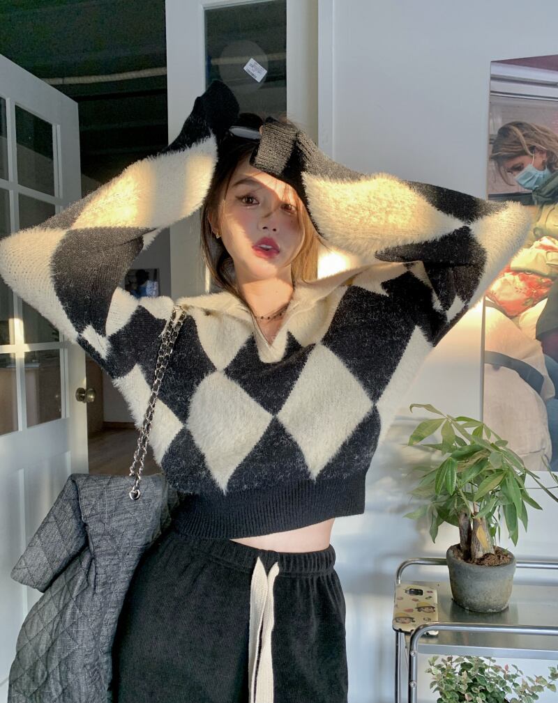 色:黒と白のダイヤモンドセーター