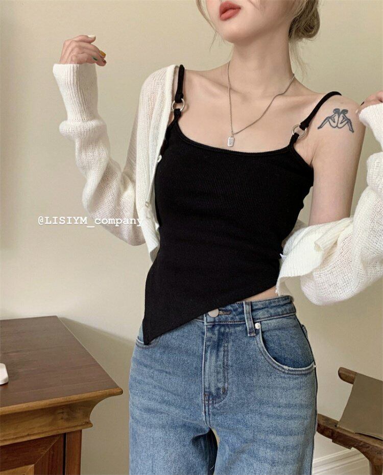 ブラックスリムフィット薄手スプリング韓国ファッショントップス 春物 スタイル MONROE97452021302