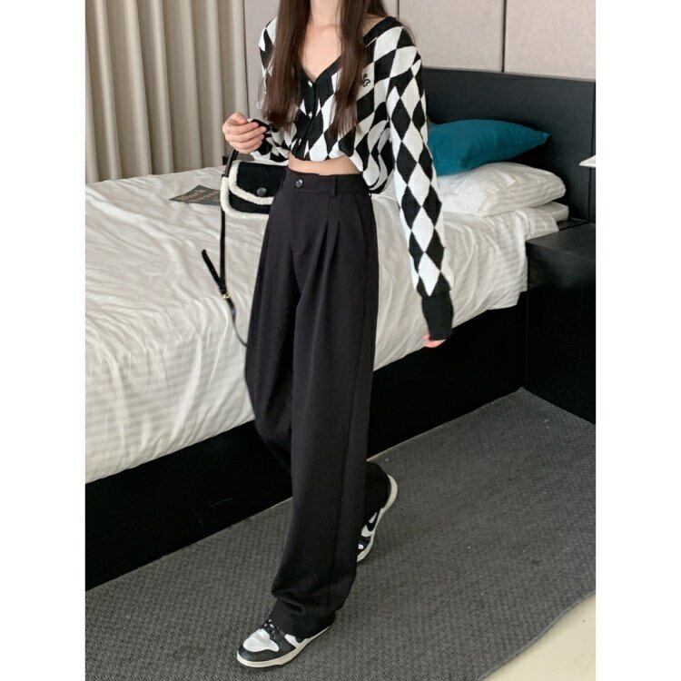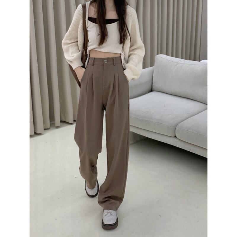 スリムカーキスタンダードカジュアルパンツ スプリング レトロ 春物 ウエスト MONROE10346397455