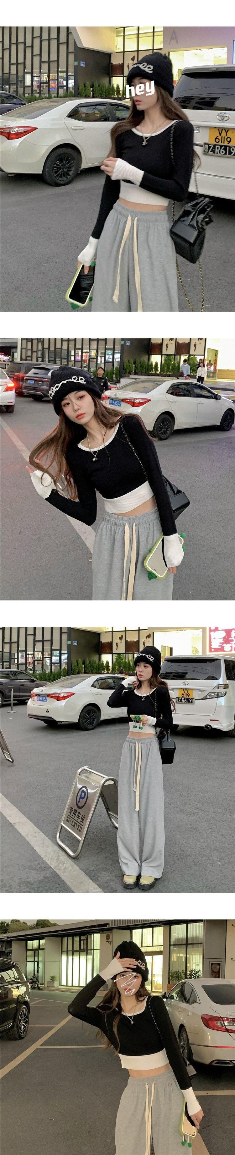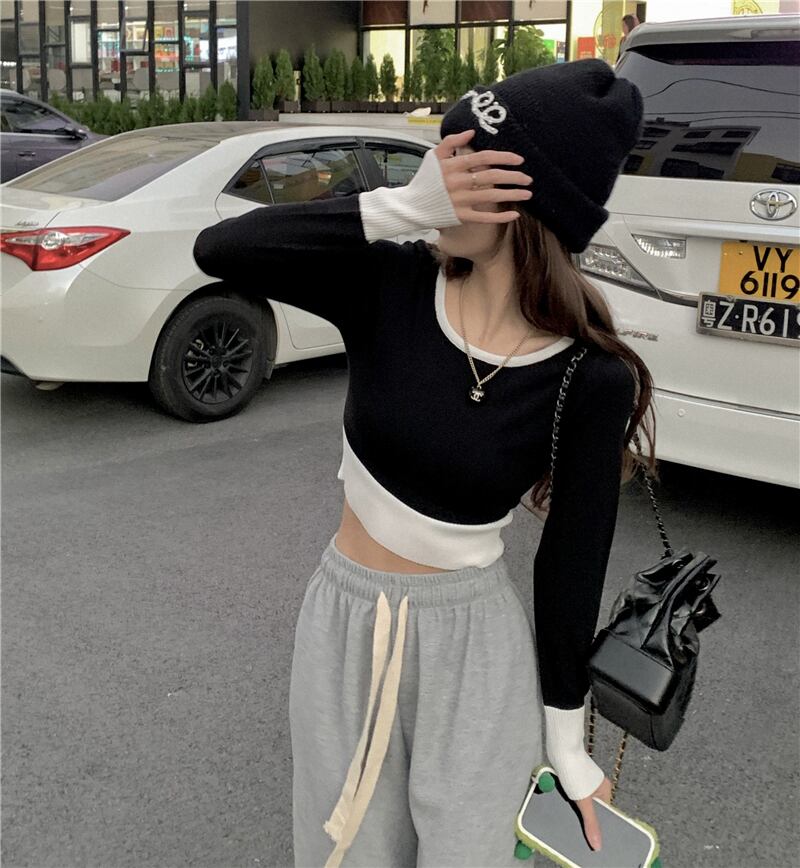 韓国ファッションスリムTシャツシャツ ゆったりスプリング秋物カジュアルトップス ロング 春物 オータム スタイル 長袖 MONROE28602488374