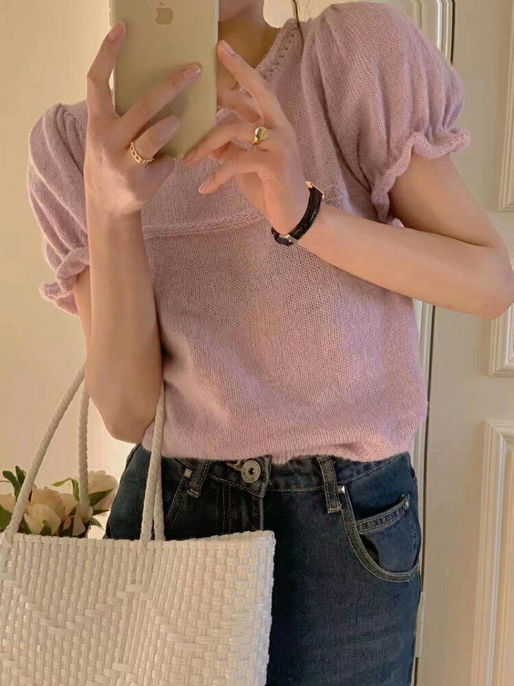 色:太郎パープルニットパフスリーブ,ホワイトニットパフスリーブ,イエローニットパフスリーブ