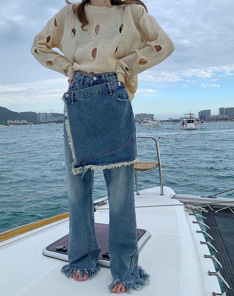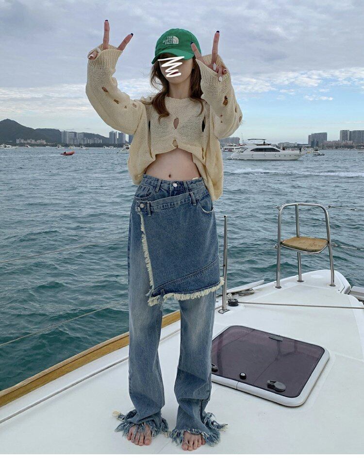 ハイウェストスリムジーンズ スプリングルーズパンツ 春物 ウエスト MONROE44068015251