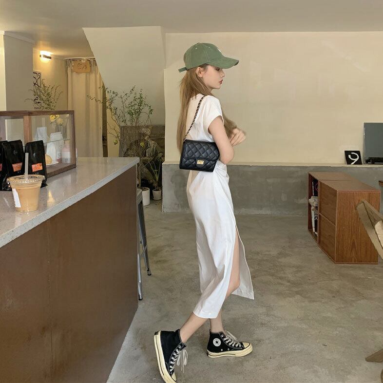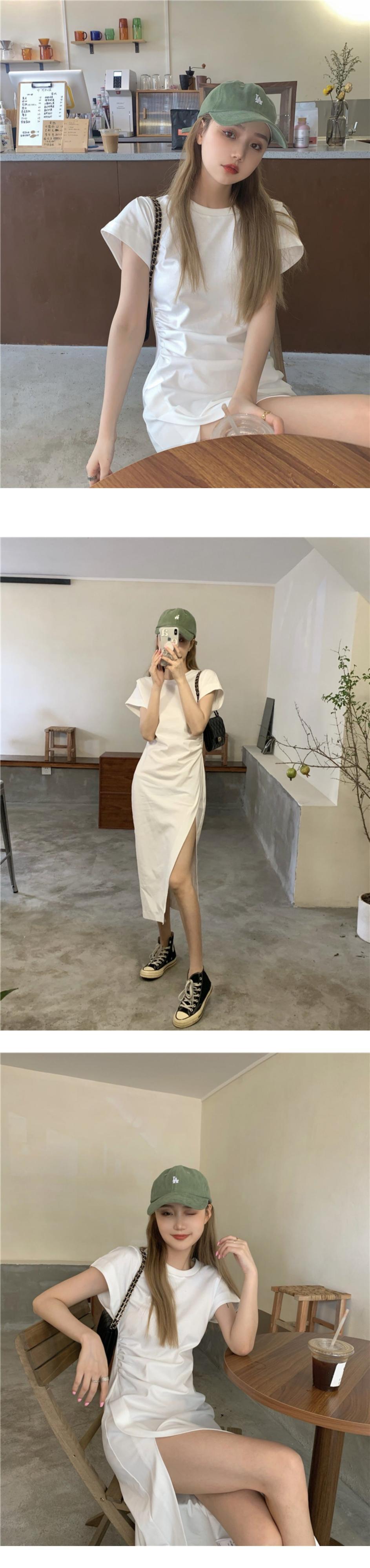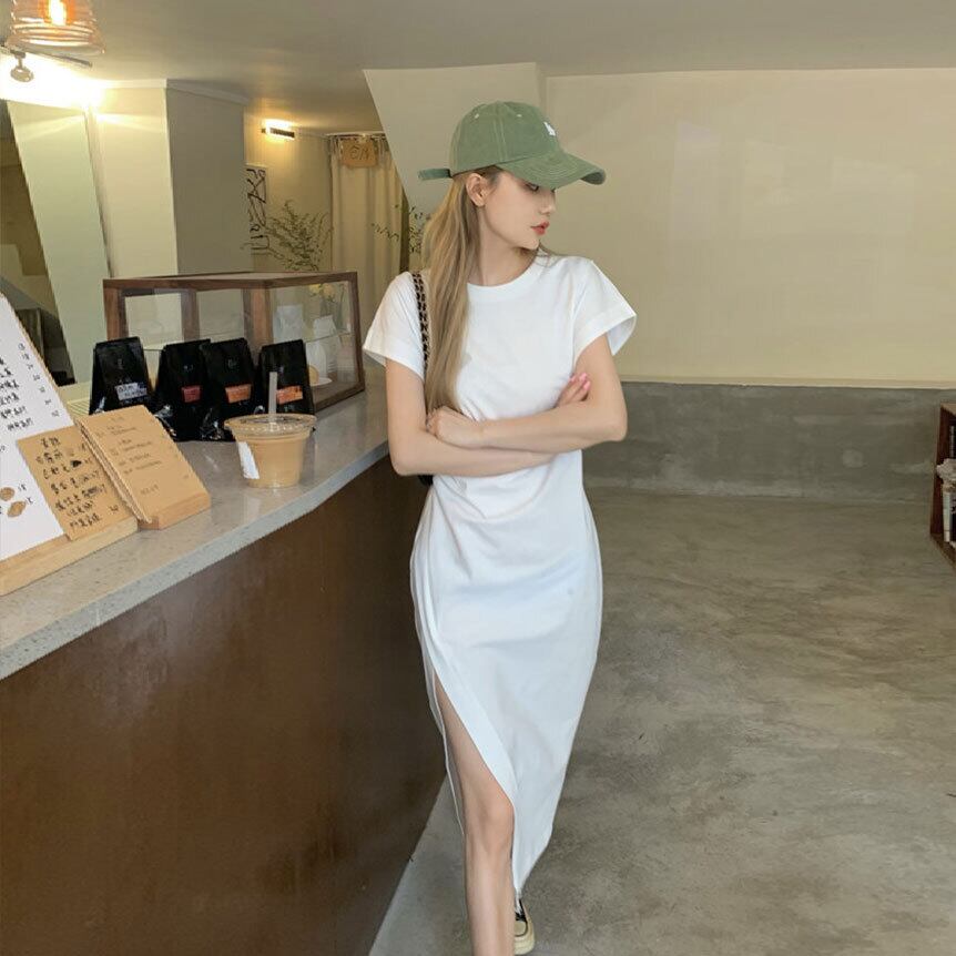ホワイトスリットTシャツワンピース夏服スリムロングスカート 大人ガーリー スウィート キュート カジュアル 夏物 MONROE44290835795