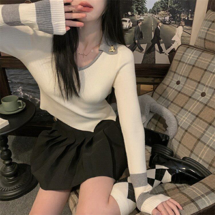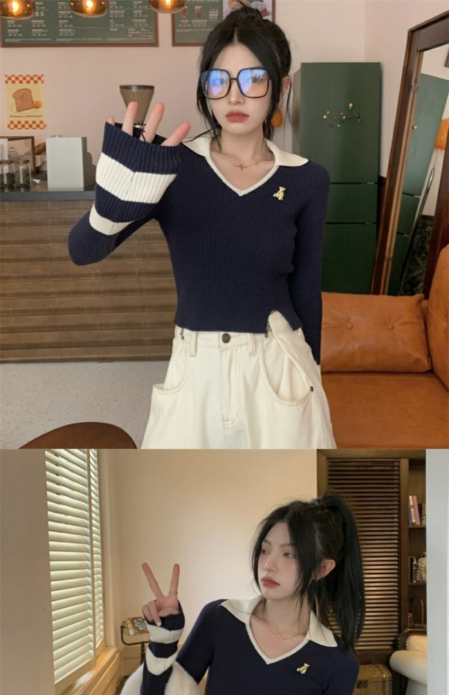 韓国ファッションショート薄手ニットセーター ジャケット スプリングVネックカジュアルトップス ロング 春物 スタイル 長袖 MONROE82925499214