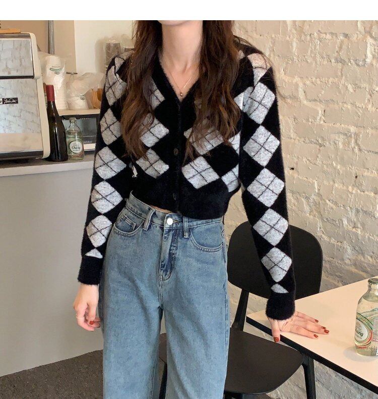 スタンダードVネックニットカーディガン薄手ショートセーター コート 秋物ウィンタートップス レトロ オータム 冬物 MONROE6002629837