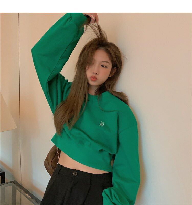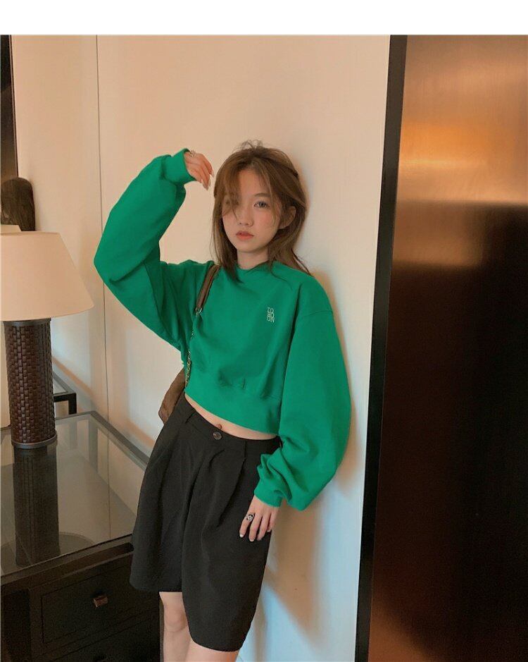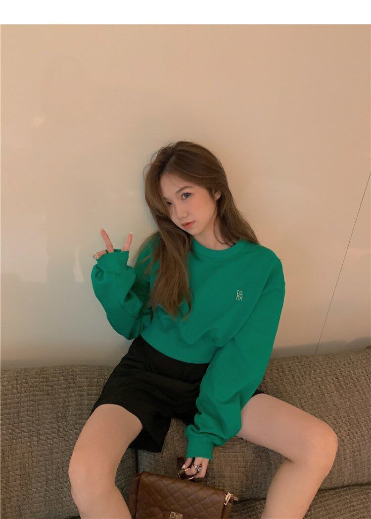 韓国ファッションスタンダードショートセーター コート スプリンググリーンカジュアルトップス ロング レトロ 春物 スタイル 長袖 MONROE90652888510