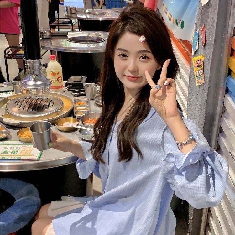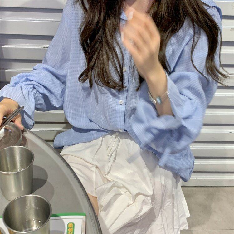韓国ファッションNEWシャツ ブルー薄手コート スプリングトップス 大人ガーリー スウィート キュート カジュアル 春物 MONROE67075386225