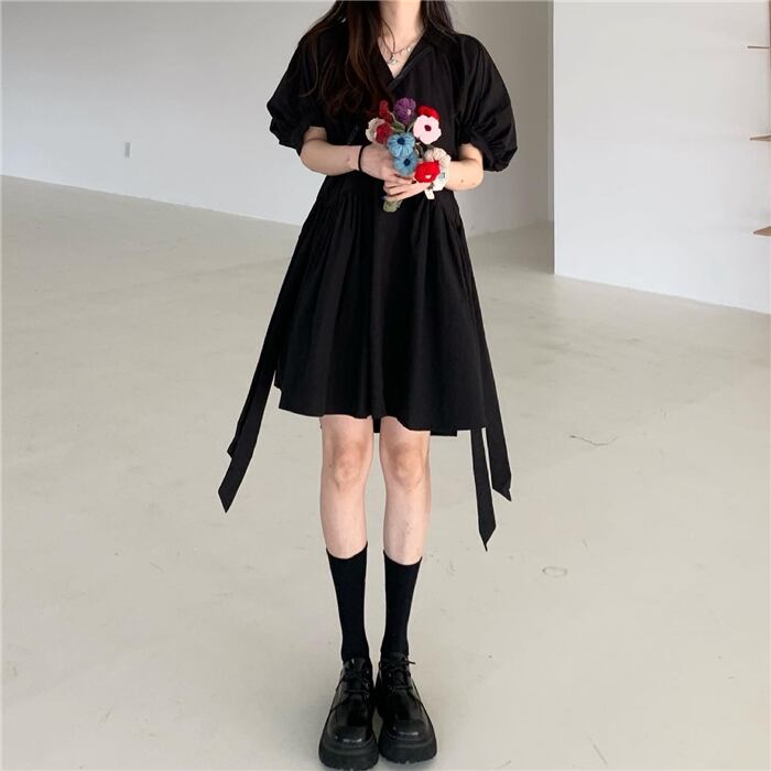 韓国ファッションNEWスタイルワンピーススプリングVネック薄手スカート ストリート 大人ガーリー スウィート キュート カジュアル 春物 MONROE31661984694