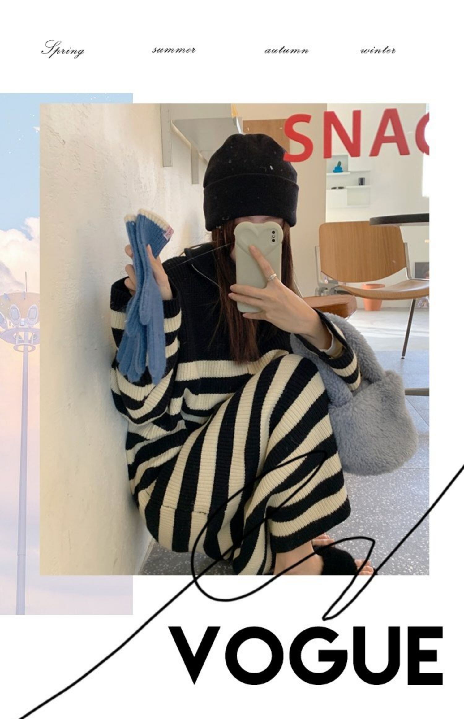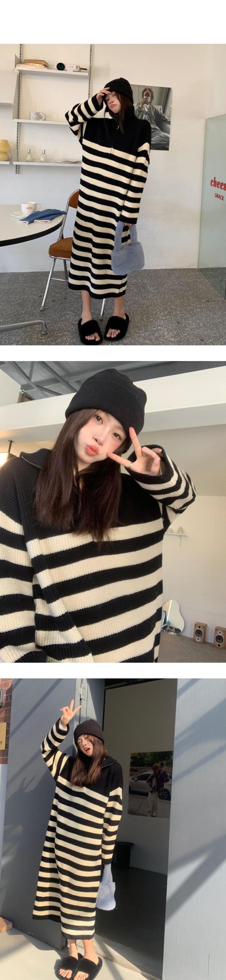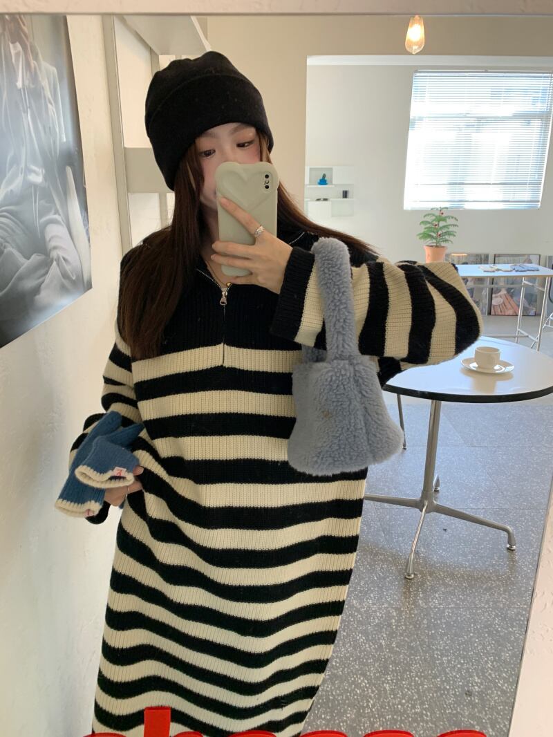ストライプニットセーター ルーズコート スプリング秋物トップス 春物 オータム ミドル丈 MONROE61041725123