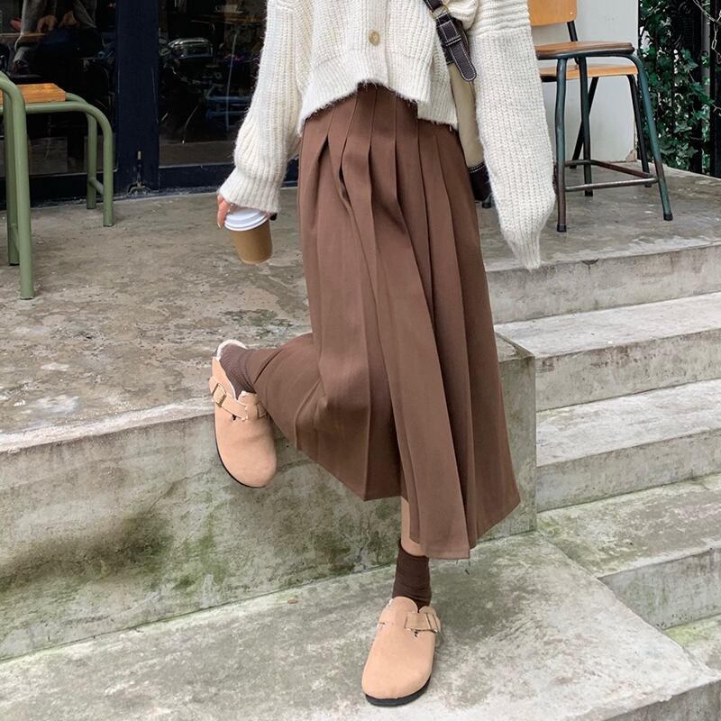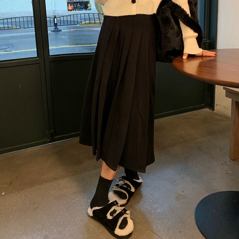 カラープリーツスカート スプリング秋物ハイウェストAラインセーター ロング 春物 オータム ウエスト ミドル丈 MONROE37799073613