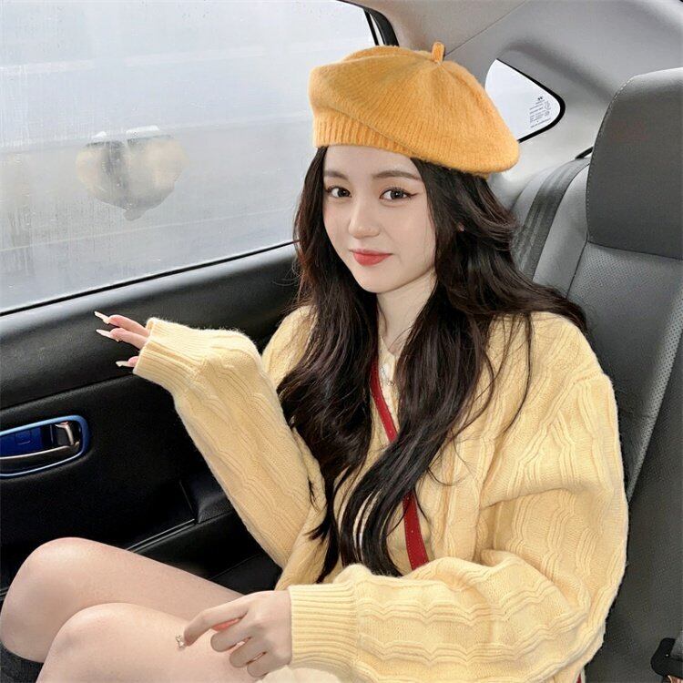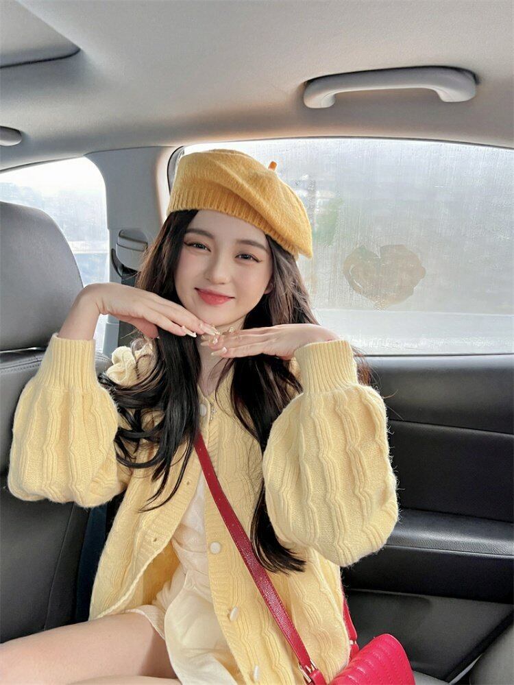 韓国ファッションイエロースタンダードニットカーディガンスプリングカジュアルセーター コート レトロ 春物 スタイル MONROE50663202511