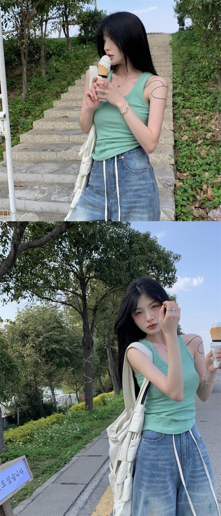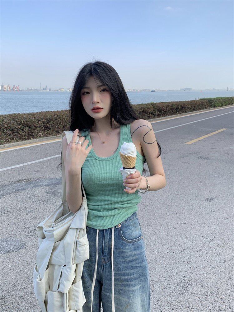 スリムグリーンスプリング夏服ショートトップス 春物 夏物 MONROE94636562165