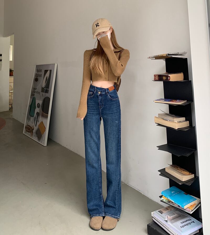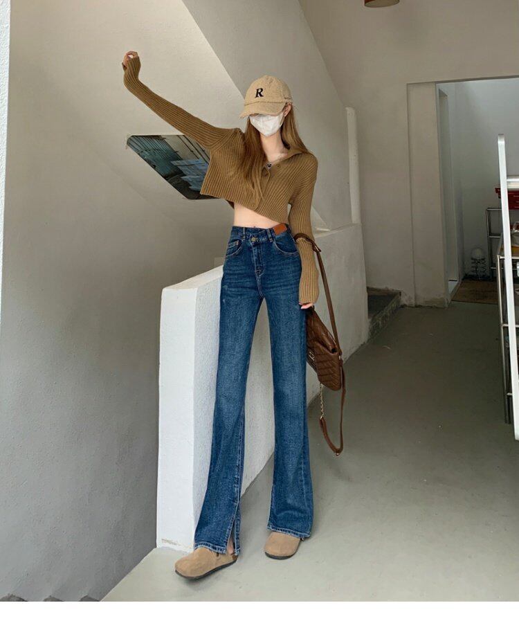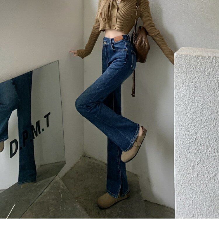 韓国ファッションハイウェストウェストスリムジーンズ スプリング秋物スリットワイドレッグパンツ 春物 オータム ワイドパンツ スタイル ウエスト MONROE39782104786