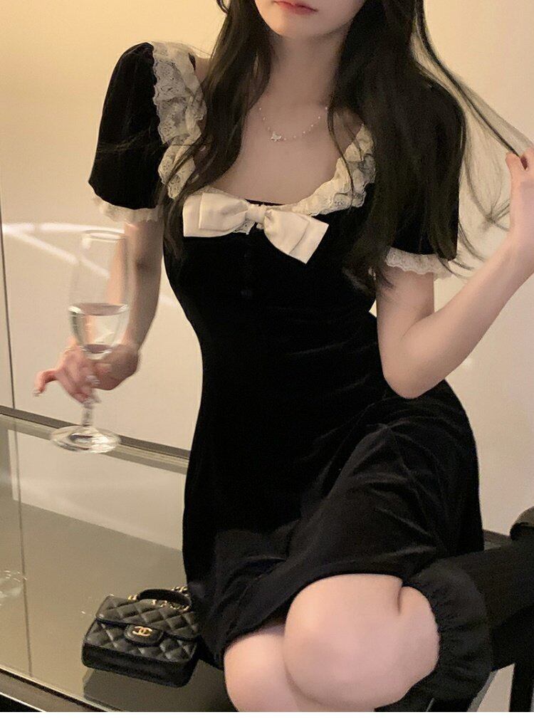 NEWブラックワンピーススプリングウェストスカート ストリート 春物 ピュア ウエスト MONROE17626411313