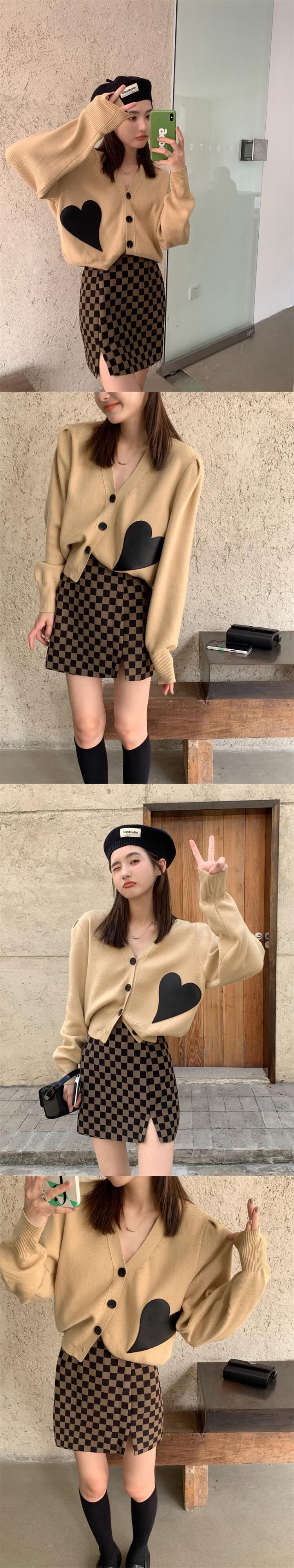 色:カーキトップ,コーヒーブラックスカート