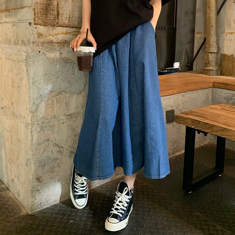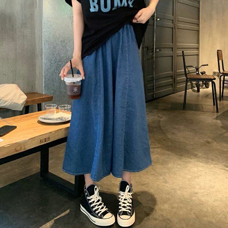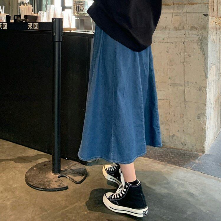 韓国ファッションスタンダードブルーハイウェストウェストAラインスカート スプリング レトロ ストリート 大人ガーリー スウィート キュート カジュアル 春物 スタイル ウエスト MONROE61810745231