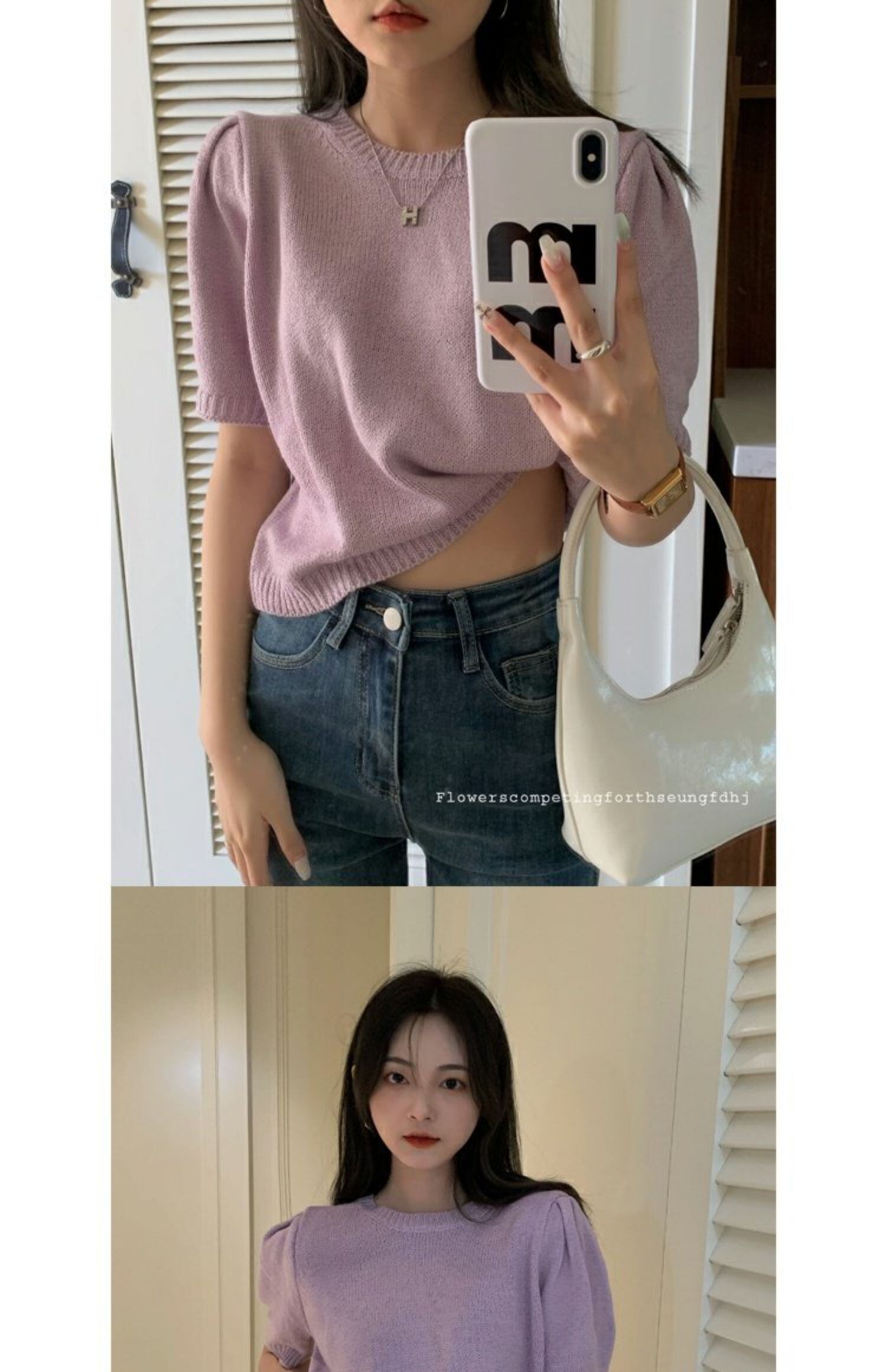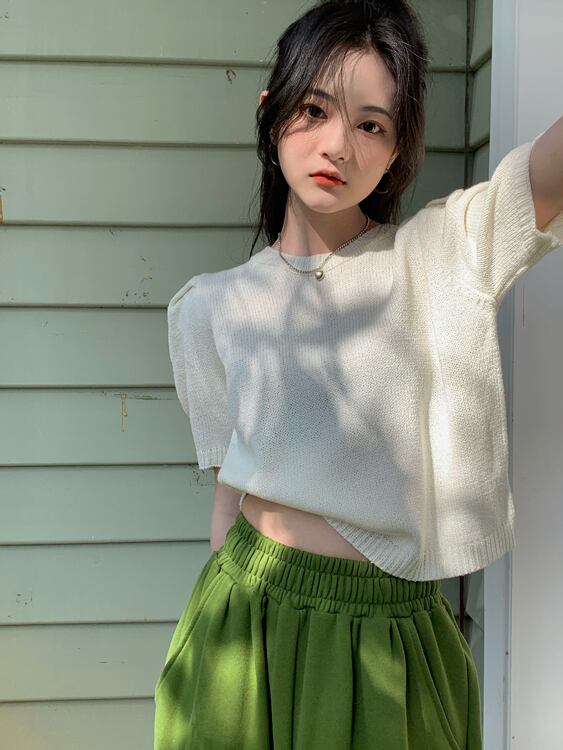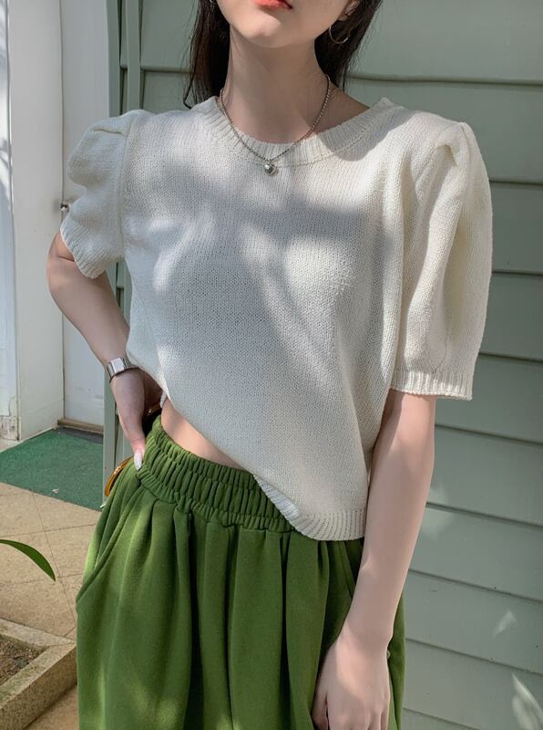 スリーブショートトップス 夏服韓国ファッションホワイトニット半袖Tシャツ ハーフスリーブ 夏物 MONROE97111193548