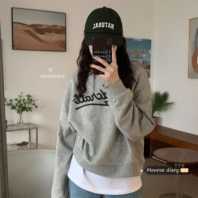 プリント柄ショートセーター ジャケット スプリング秋物ルーズプルオーバー トップス 春物 オータム ミドル丈 MONROE85256415738