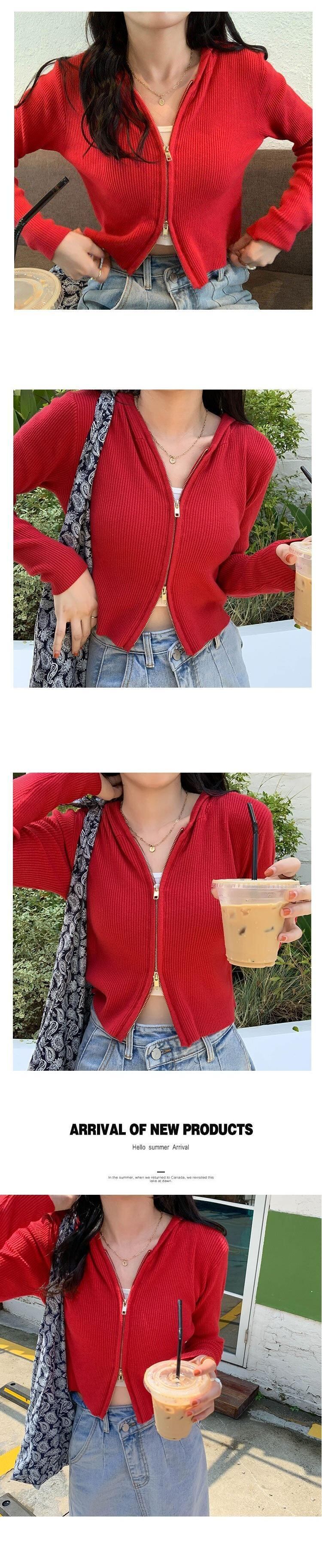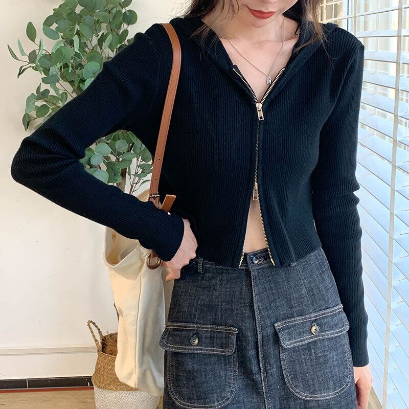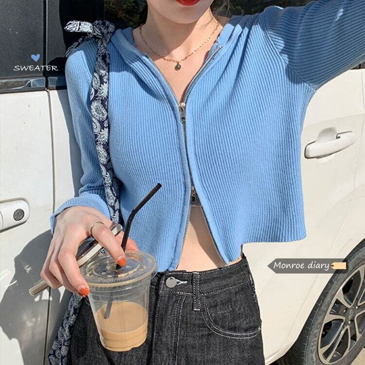韓国ファッションスリムフィットショートニットセーター ジャケット スプリングクロップドカーディガントップス 春物 スタイル MONROE39580260525