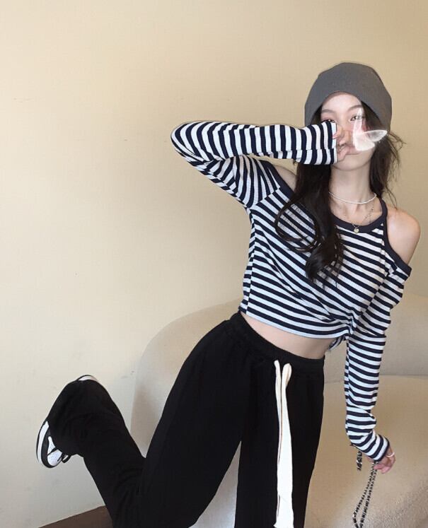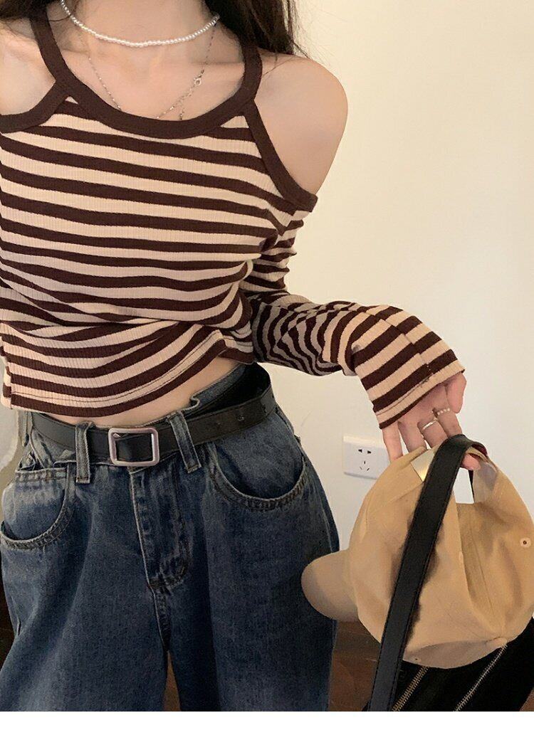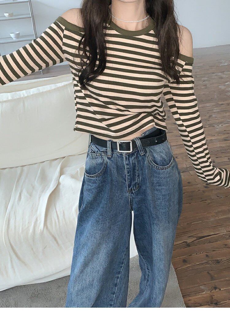 色:ブルーストライプリークショルダーT,コーヒーストライプリークショルダーT,グリーンストライプリークショルダーT