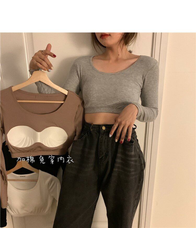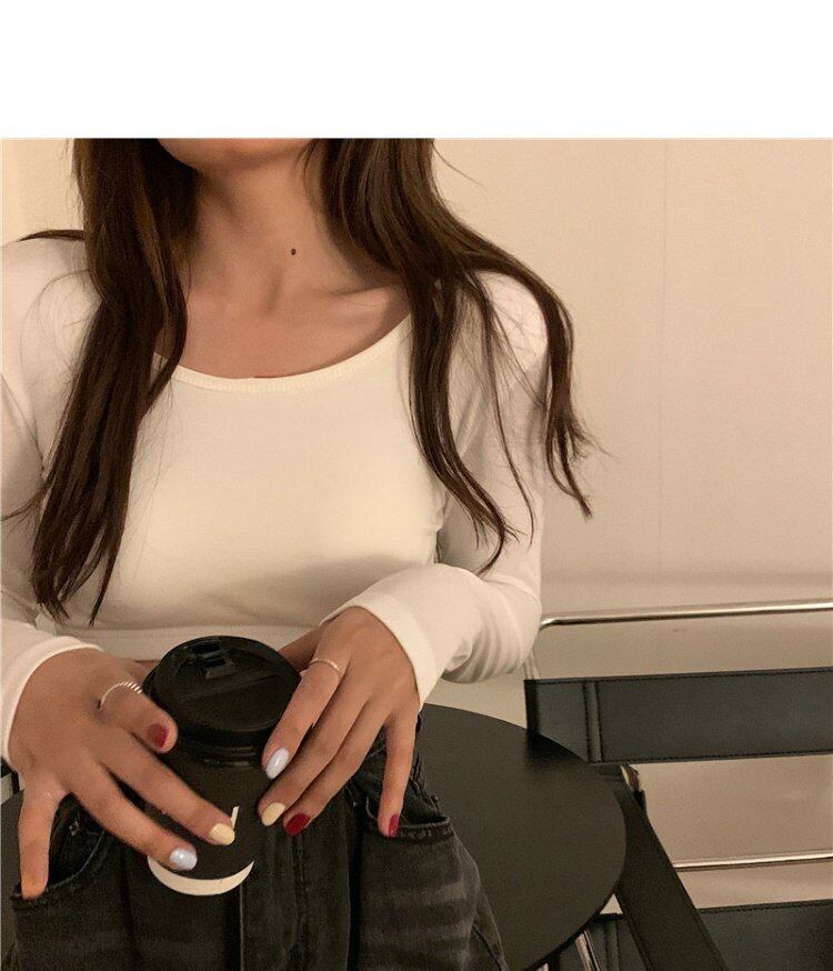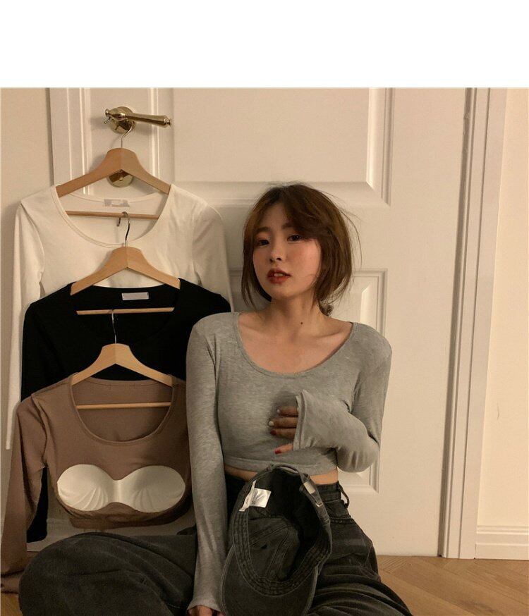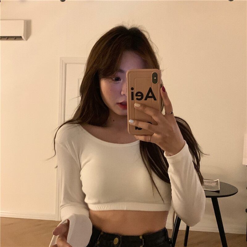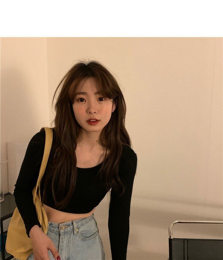韓国ファッションスリムTシャツシャツ ショートブラックゆったりスプリング秋物プルオーバー トップス ロング 春物 オータム スタイル 長袖 MONROE12246235640
