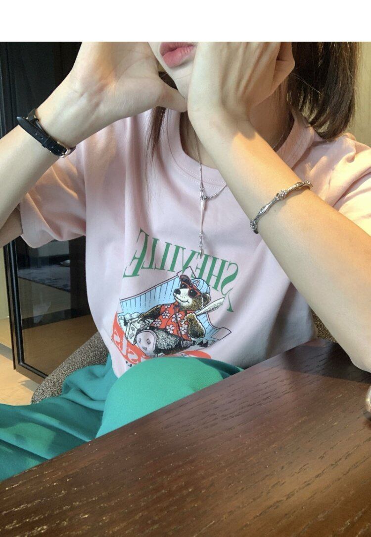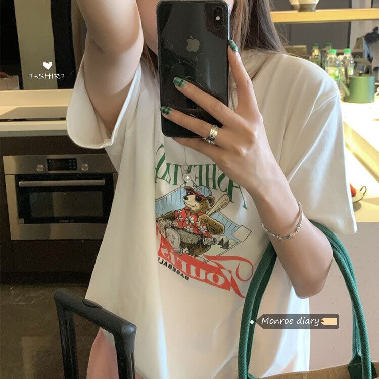 NEWホワイトTシャツシャツ ゆったりスプリングカジュアルプリントルーズトップス 春物 MONROE19298074809