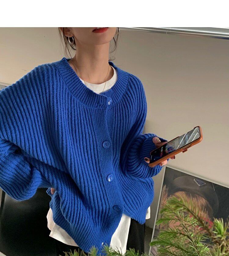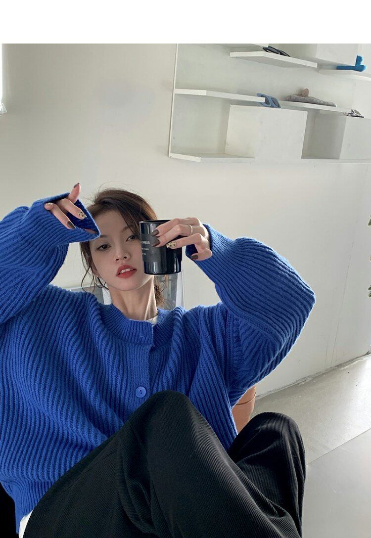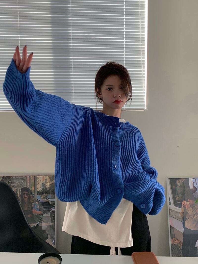 スタンダードスタイルブルーニットカーディガンセーター ジャケット 秋物ウィンタートップス レトロ オータム 冬物 MONROE13080897222