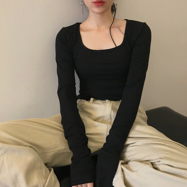 ブラックゆったりシャツ スプリング秋物カラーショートトップス 春物 オータム スクウェア MONROE74127092923