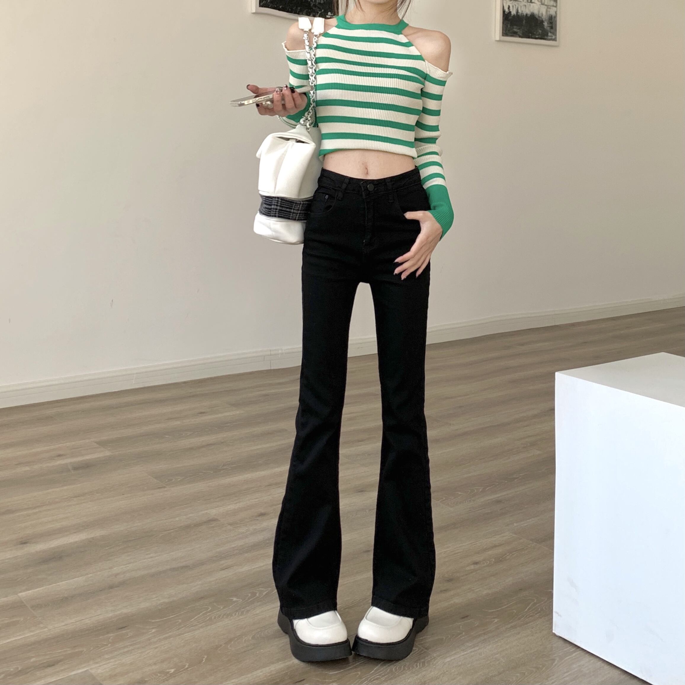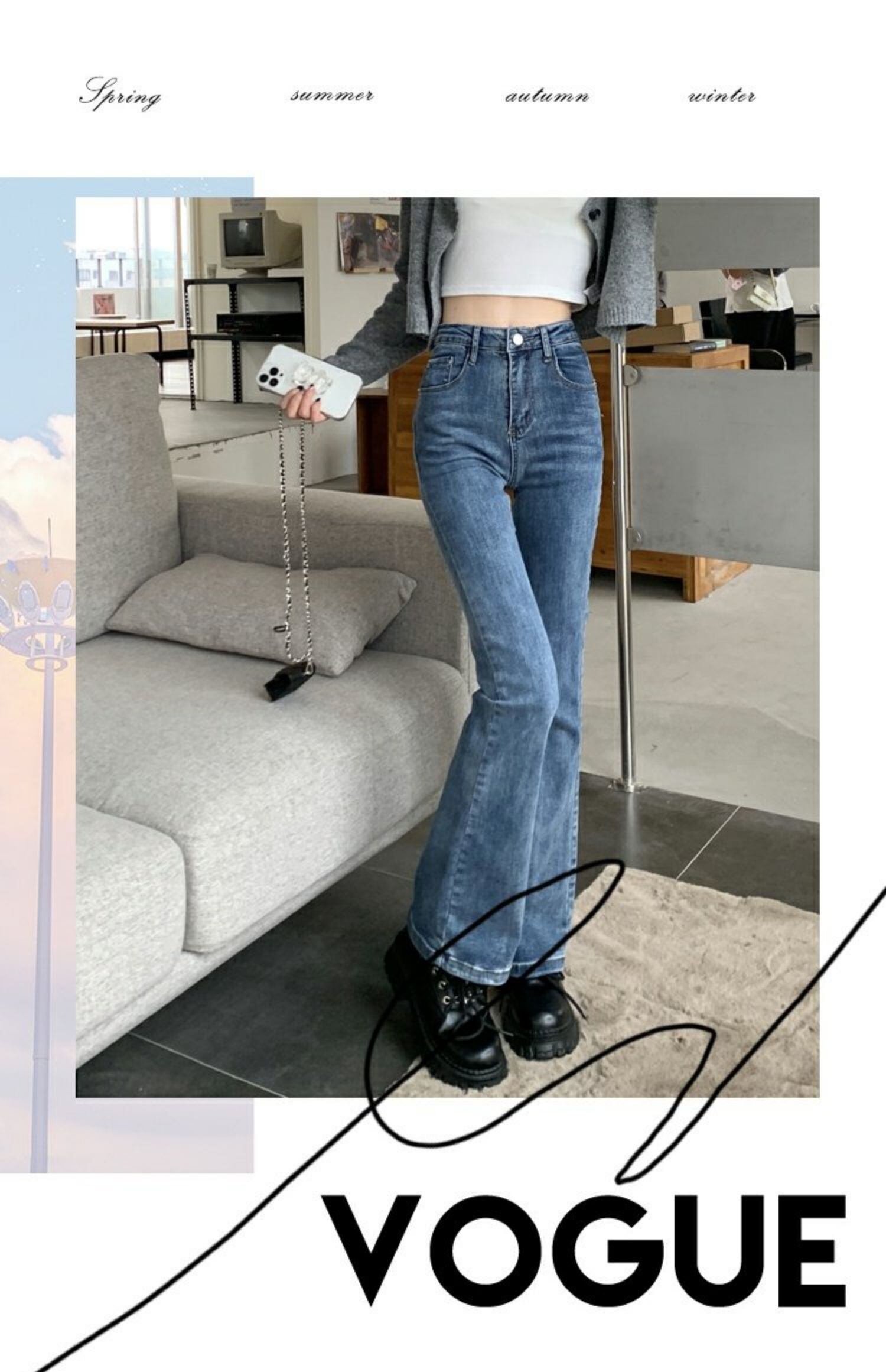 ハイウェストウェストスリムジーンズ スプリング秋物ロングパンツ 春物 オータム ウエスト MONROE72267969391