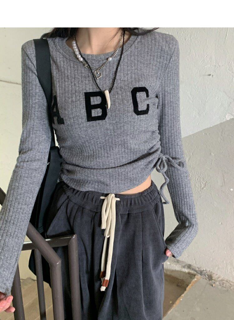 スリムフィット薄手ショートTシャツシャツ スタイルゆったりスプリング秋物プルオーバー トップス ロング 春物 オータム 長袖 MONROE78977478744