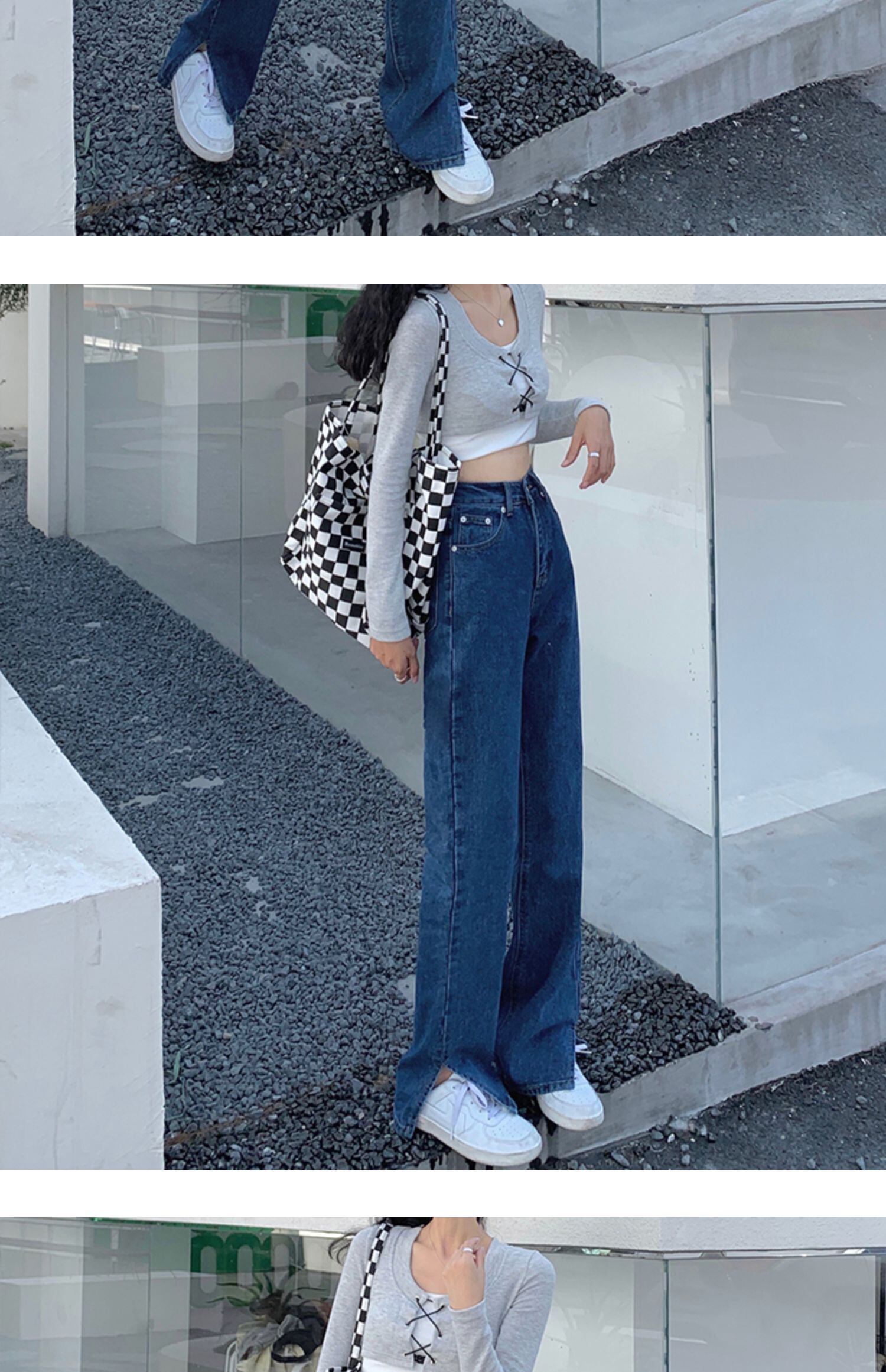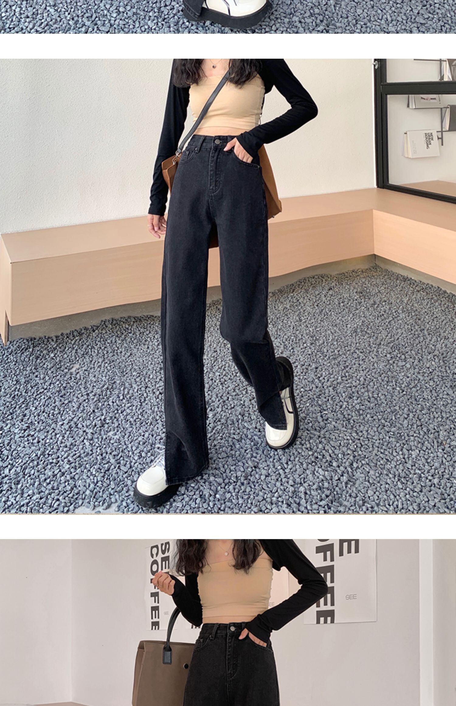 ウェスト薄手ジーンズ スプリング秋物ブラックスタンダードワイドレッグロングパンツ レトロ 春物 オータム ワイドパンツ ウエスト MONROE38719452249