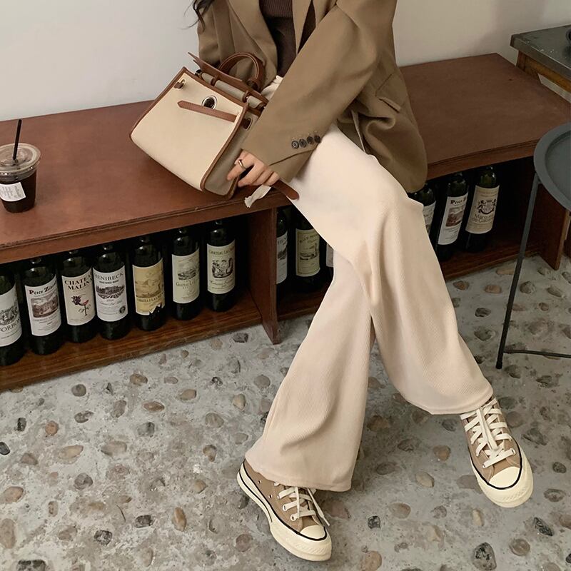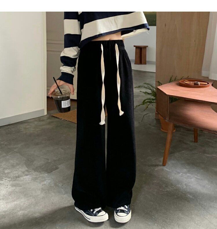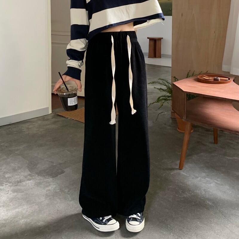 パンツ 薄手ルーズスプリング秋物ブラックカジュアル ハイウェスト 春物 オータム ウエスト MONROE60525387051