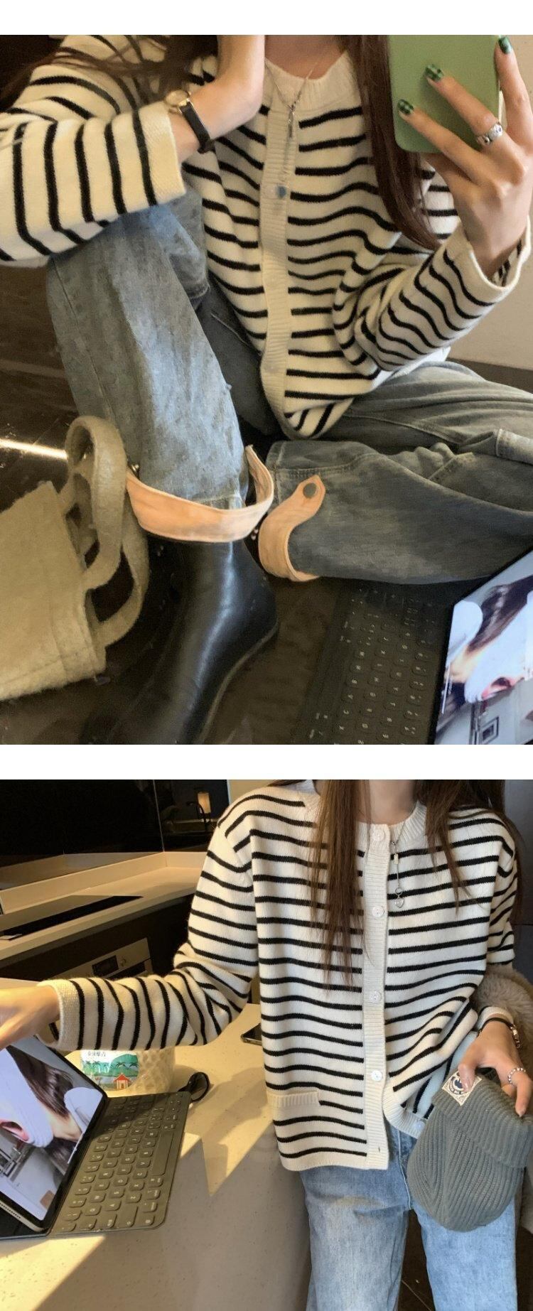 ストライプニットカーディガンスプリングスタイルセーター ジャケット トップス 春物 MONROE78090997504